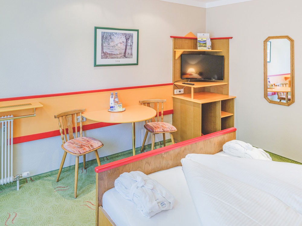 Nice hotel. Good restaurant. Very clean. There are some guests with dogs around which is different and kind of fun. They were all well behaved. Very close to the Lech Weg walking trail. Beautiful surroundings just out the door.