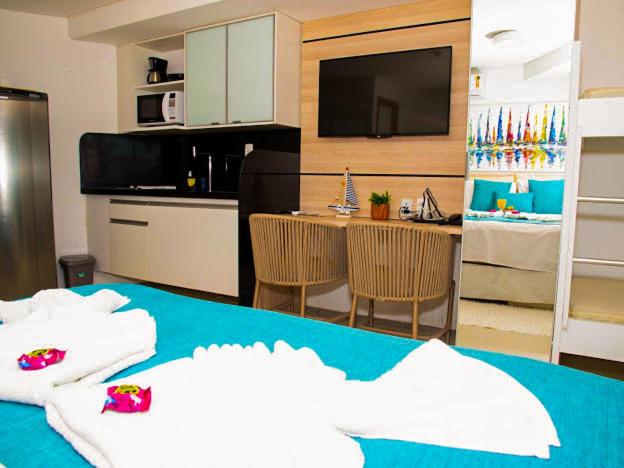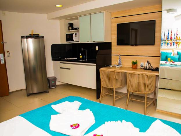 Experience the ultimate beach getaway at Porto Beach Resort - Marulhos, just steps away from Muro Alto Beach. Indulge in the comfort of a fully equipped kitchen, spacious balcony, and modern amenities like free WiFi and satellite TV.