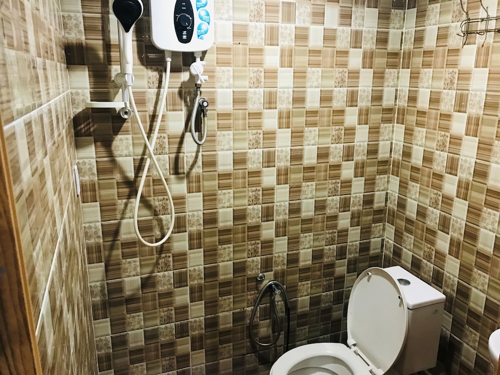 Room only has bed and small clothes rack, bathroom only has shower and toilet, no sink. Paint peeling from walls, not well maintained. Door just has simple push lock, no dead bolt. Bed and bedclothes are clean, towel is clean. Aircond needs maintenance but was ok.