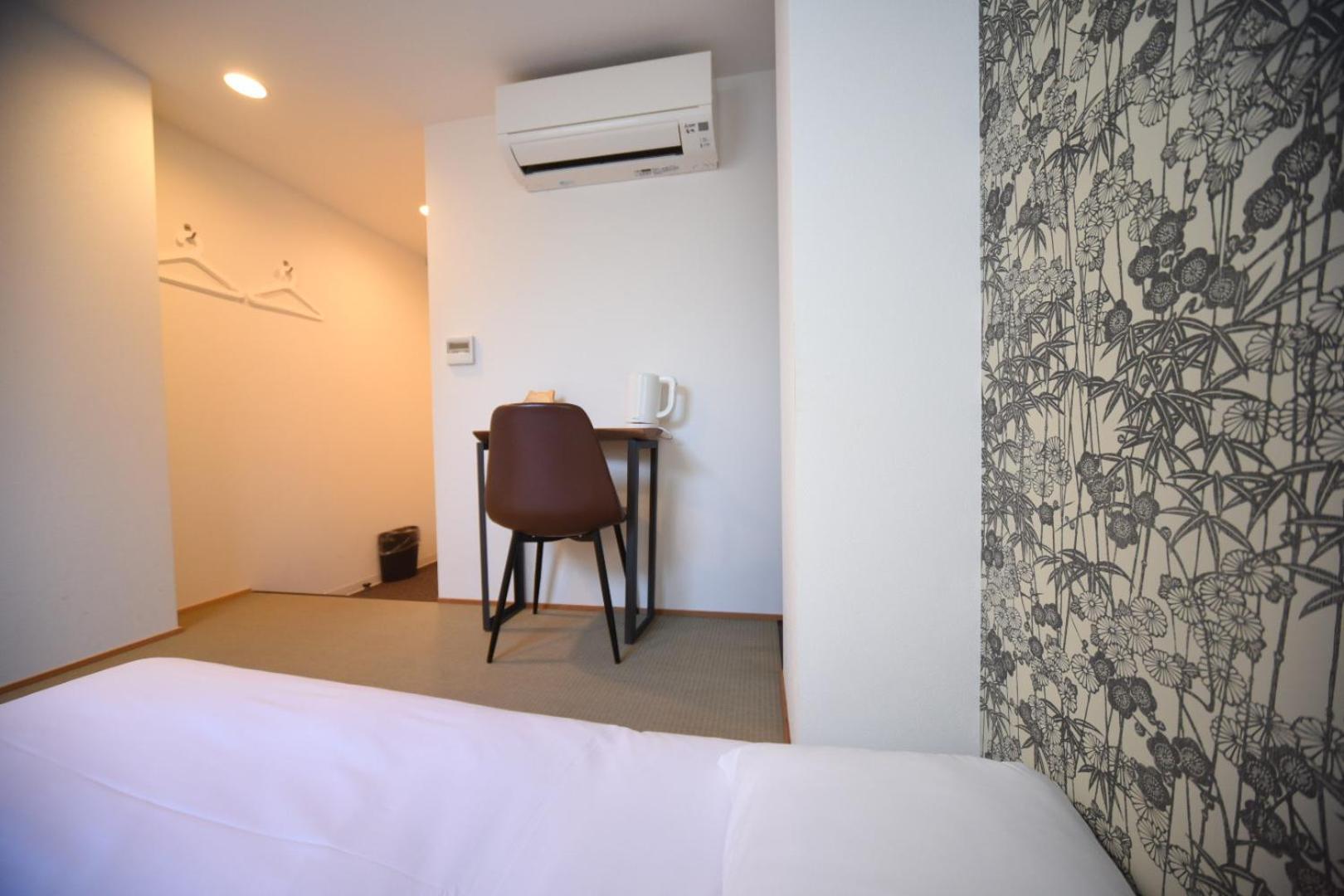 Le stanze sono piccole in un modo imbarazzante. Non può aprire nemmeno una valigia nello spazio tra il letto e il muro. Capisco che in giappone è una cosa molto diffusa ma qui si esagera. Il letto da 120cm (una piazza e mezza) viene proposto per due persone. L'aria condizionata è puntata direttamente sul letto e non c'è modo di evitarne il getto