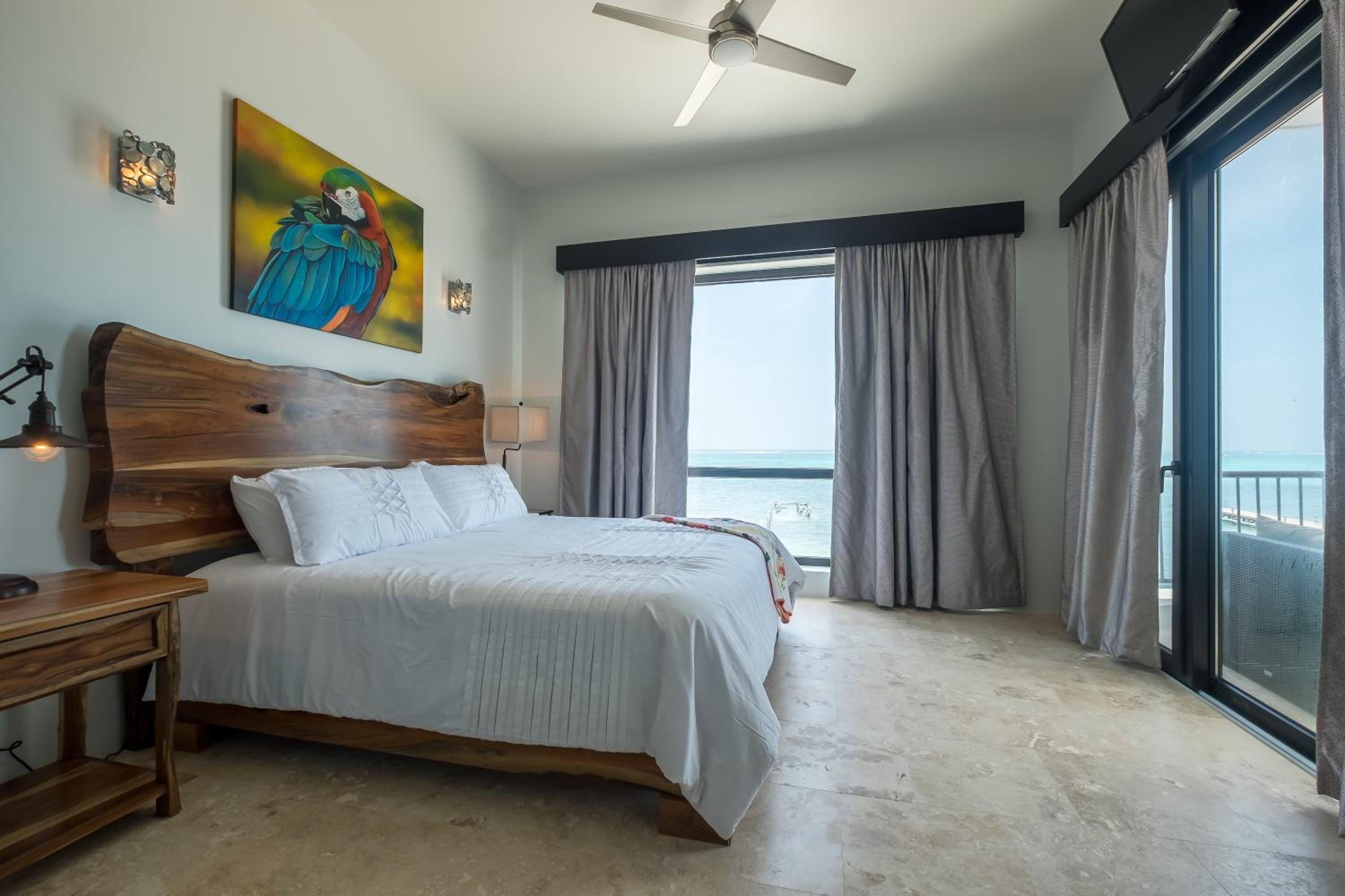 I’ve been coming to Belize for 25 years and this resort is absolutely one of the best of the best. I would highly recommend the ocean front rooms with big bay windows in the living room and master bedroom. The furniture is comfortable and brand new, the kitchen is as large as the kitchen in a regular house, the bathroom hasessentially its own hot tub plus a massive walk-in shower. Everything is brand new and so clean you could eat off of it. The location is perfect just steps from the little airport in San Pedro and it’s really just a stunning place. Absolutely amazing. The hot tub by the ocean is an extra treat, it’s hard to top sitting in a hot tub looking at the ocean, and the star is at night.