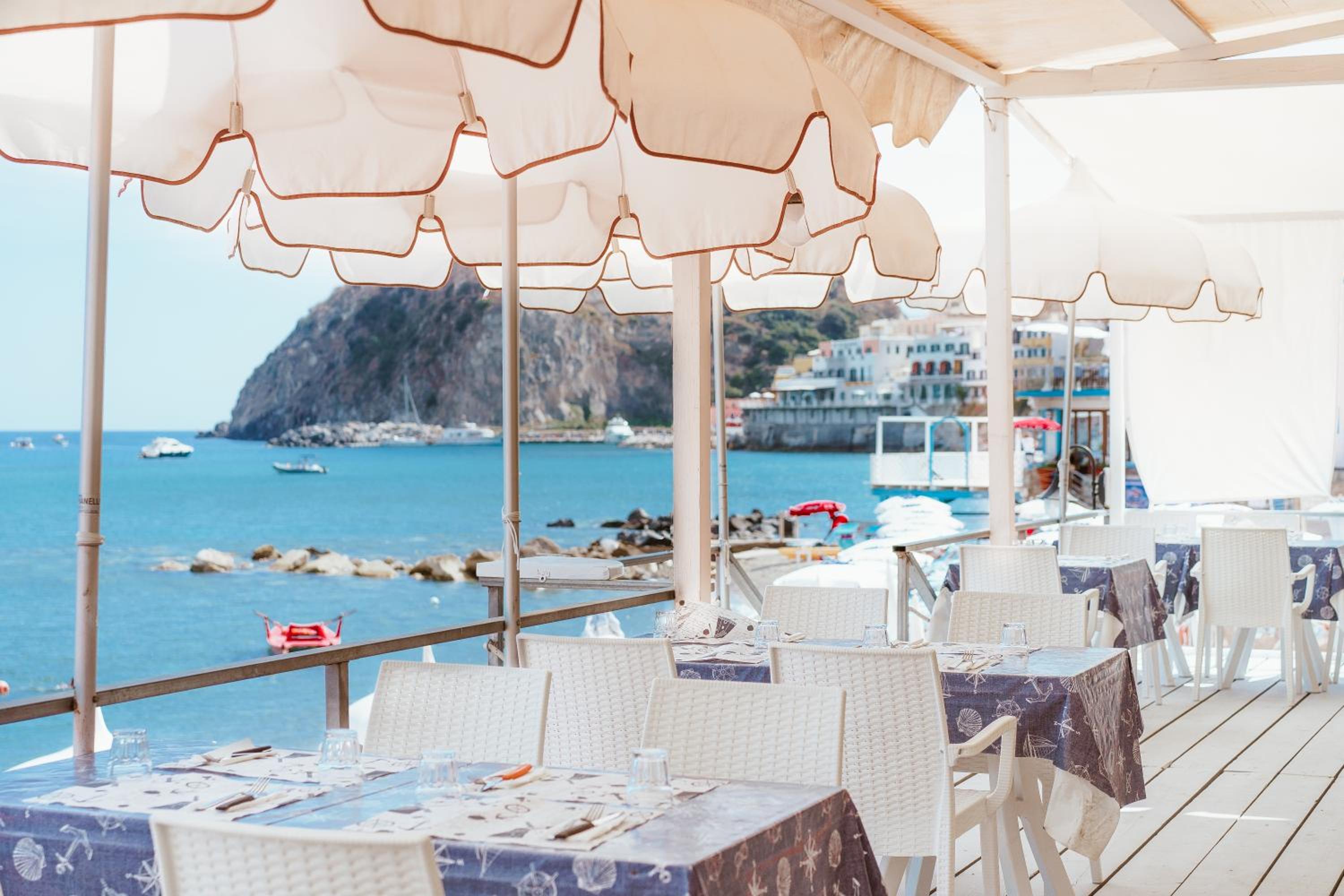 Perfect location with stunning sea view. Proximity of the beach is very good and rare at Ischia. Service on the beach was very good.,
