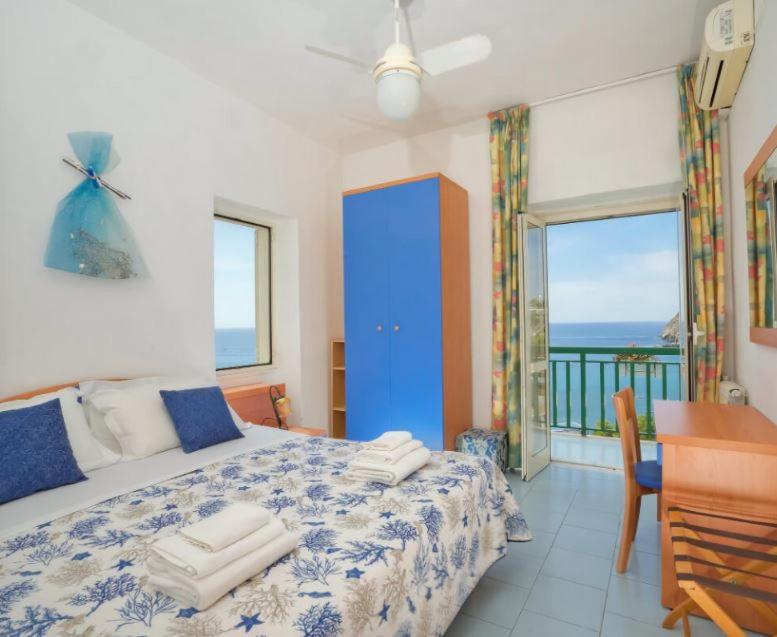 This is an amazing gem of a hotel. Very relaxed environment with plenty of families with young children as well as older couples. The view of the bay from the hotel is amazing and the walk into SantAngelo, while a bit arduous, was well worth it due to it being car free town and full of nice restaurants. The pool is perfect as well and we enjoyed the sun deck. The beach is as a short walk down the hill.