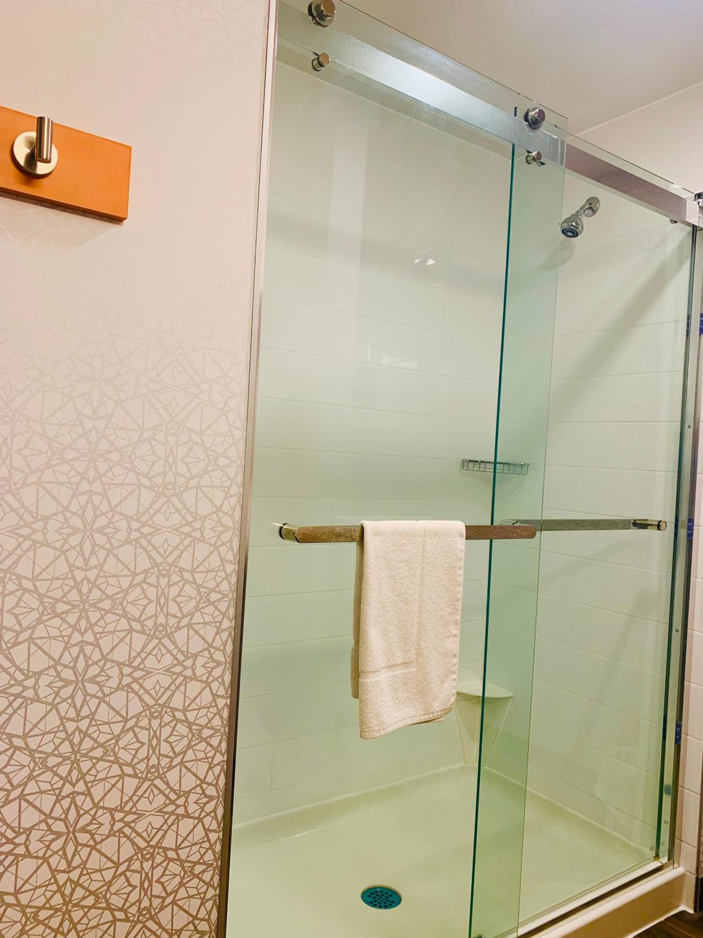 The bathroom door was horrible did not close as it is a sliding door we had to put a shoe on the outside of it to close