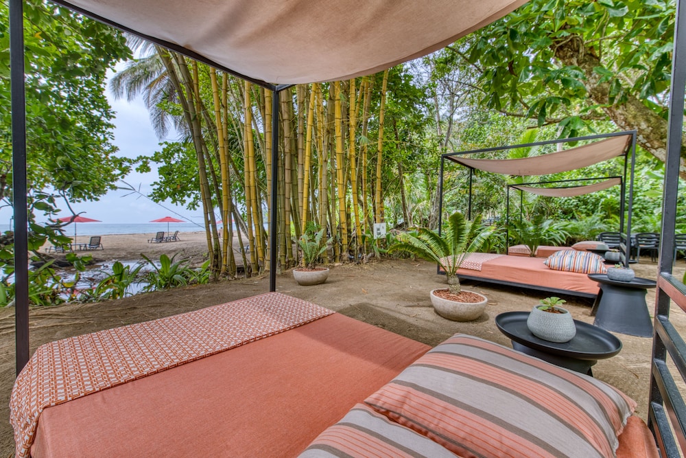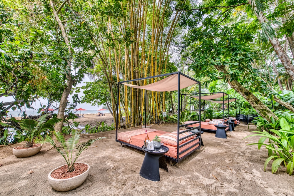 Hermoso hotel en Playa Punta Uva. Un contraste hermoso entre bosque y playa. Excelente atención al huésped en la playa. Pedimos unos cócteles y almuerzo y estuvo delicioso.