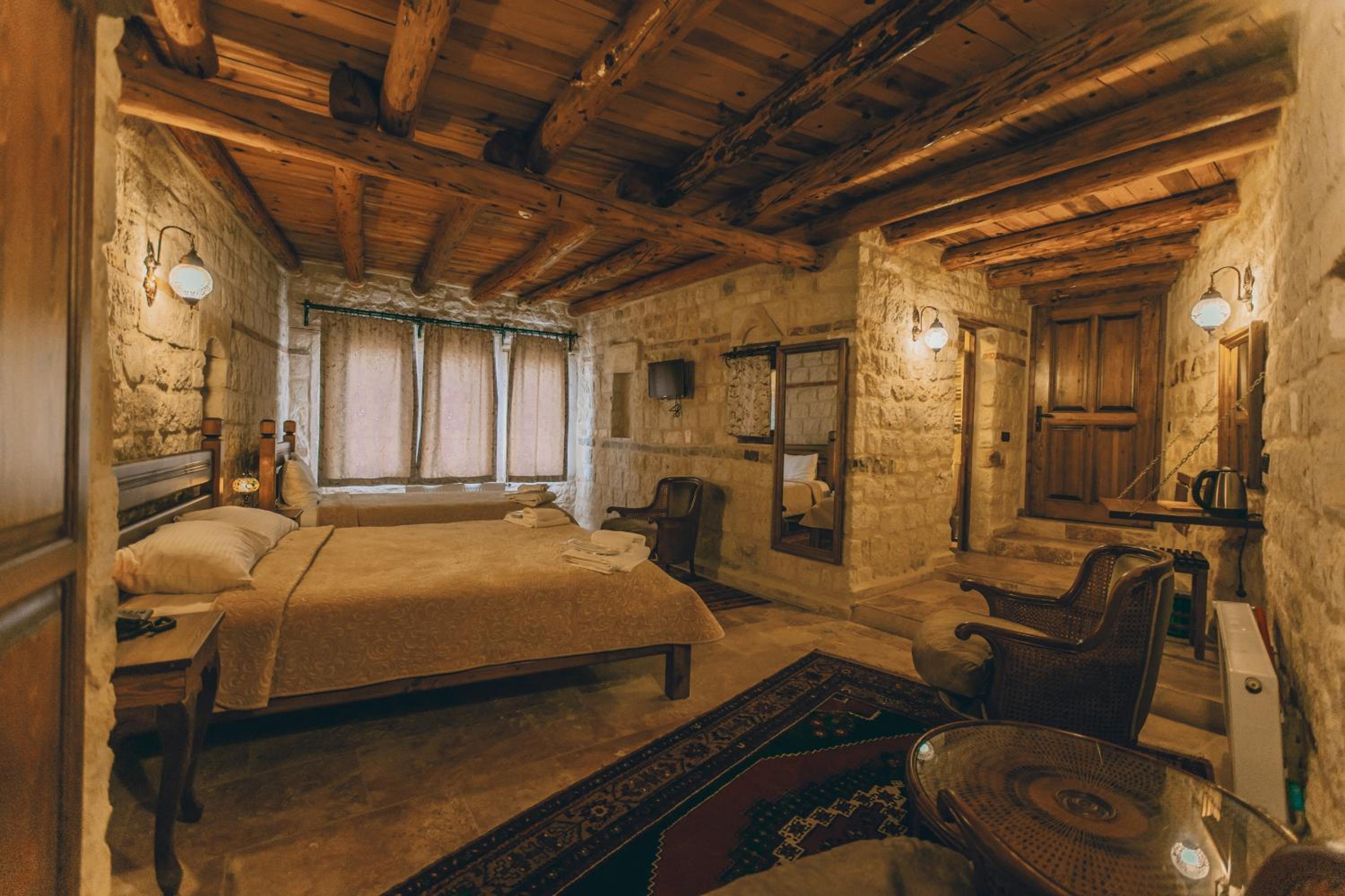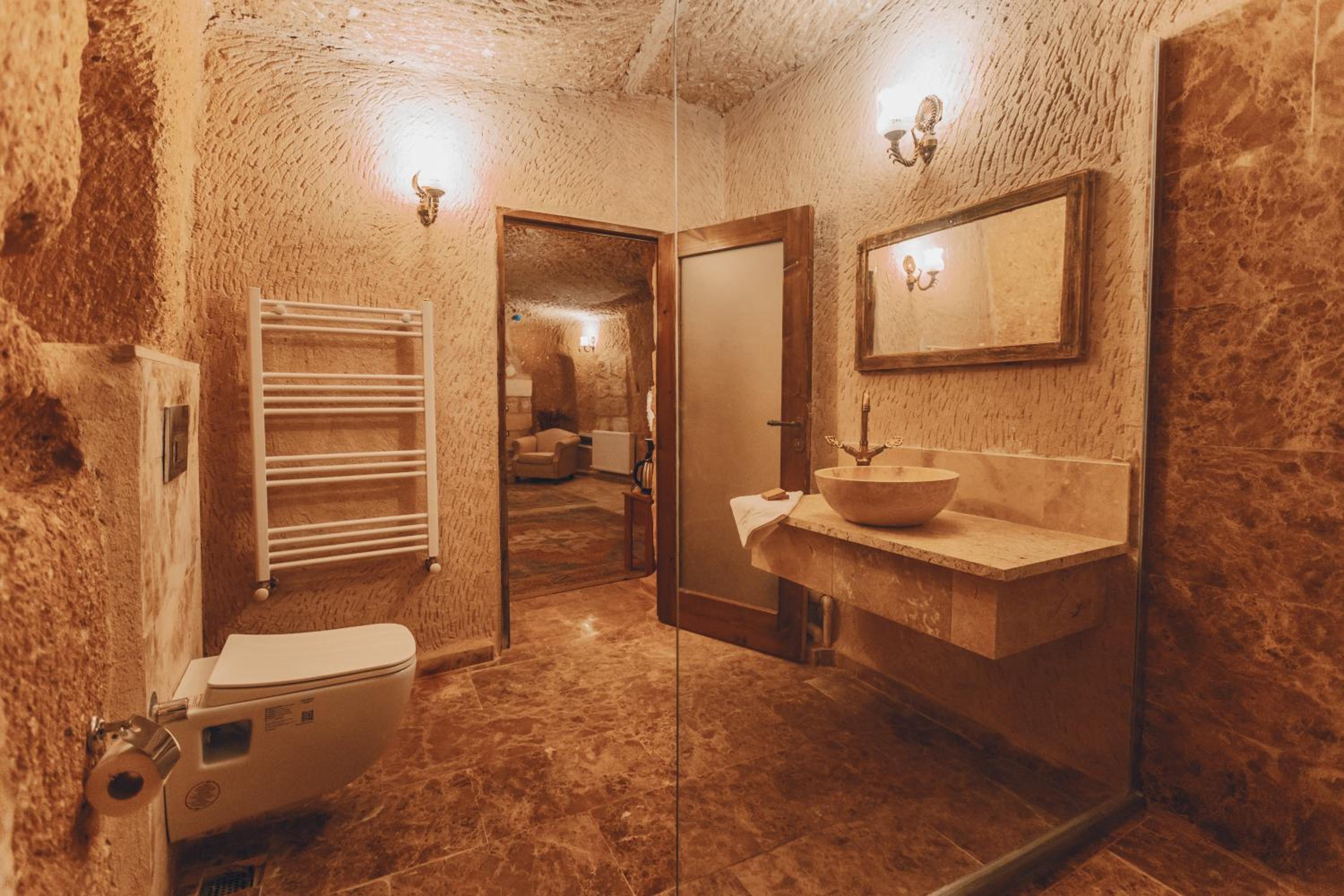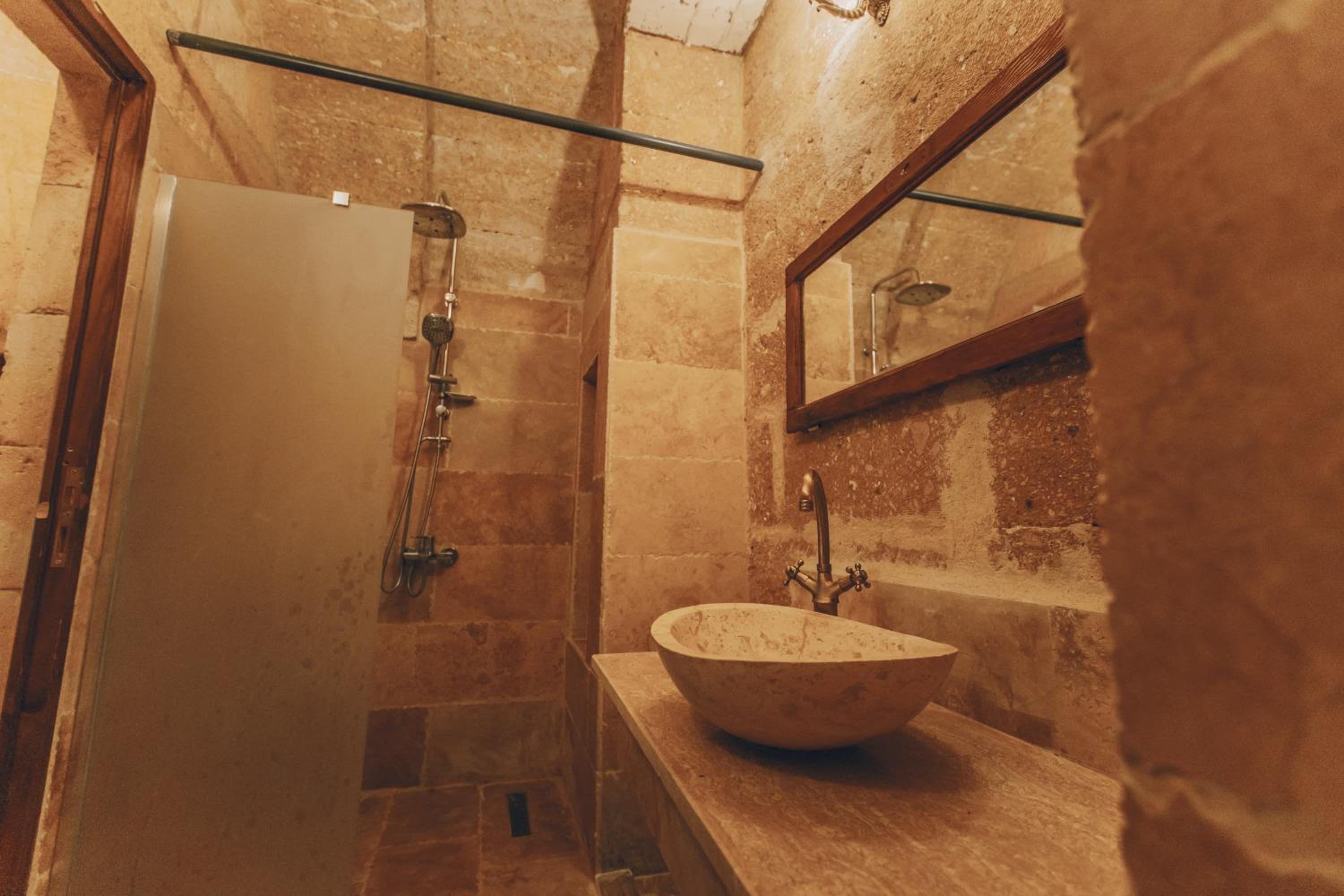 Otel çalışanları çok güler yüzlü ve terasta takla atan güvercinler eşliğinde güzel bir kahvaltı yapabilirsiniz. Biz hamam adlı odada kaldık. En altta dipte tek pencereli ve penceresi bina içine açılan bir odaydı. Oda ışık hiç almıyor, içinde banyo ile beraber bir de hamam var. Gerçek bir mağara deneyimi ancak nefes problemleri yaşayanlar için uygun değil havalanma sıkıntısı var. Bir de oda yerin altında olduğu için baya bir merdiven inip çıkılması gerekiyor. Ancak otelin diğer odaları konum itibariyle ferah ve hizmet güzel.