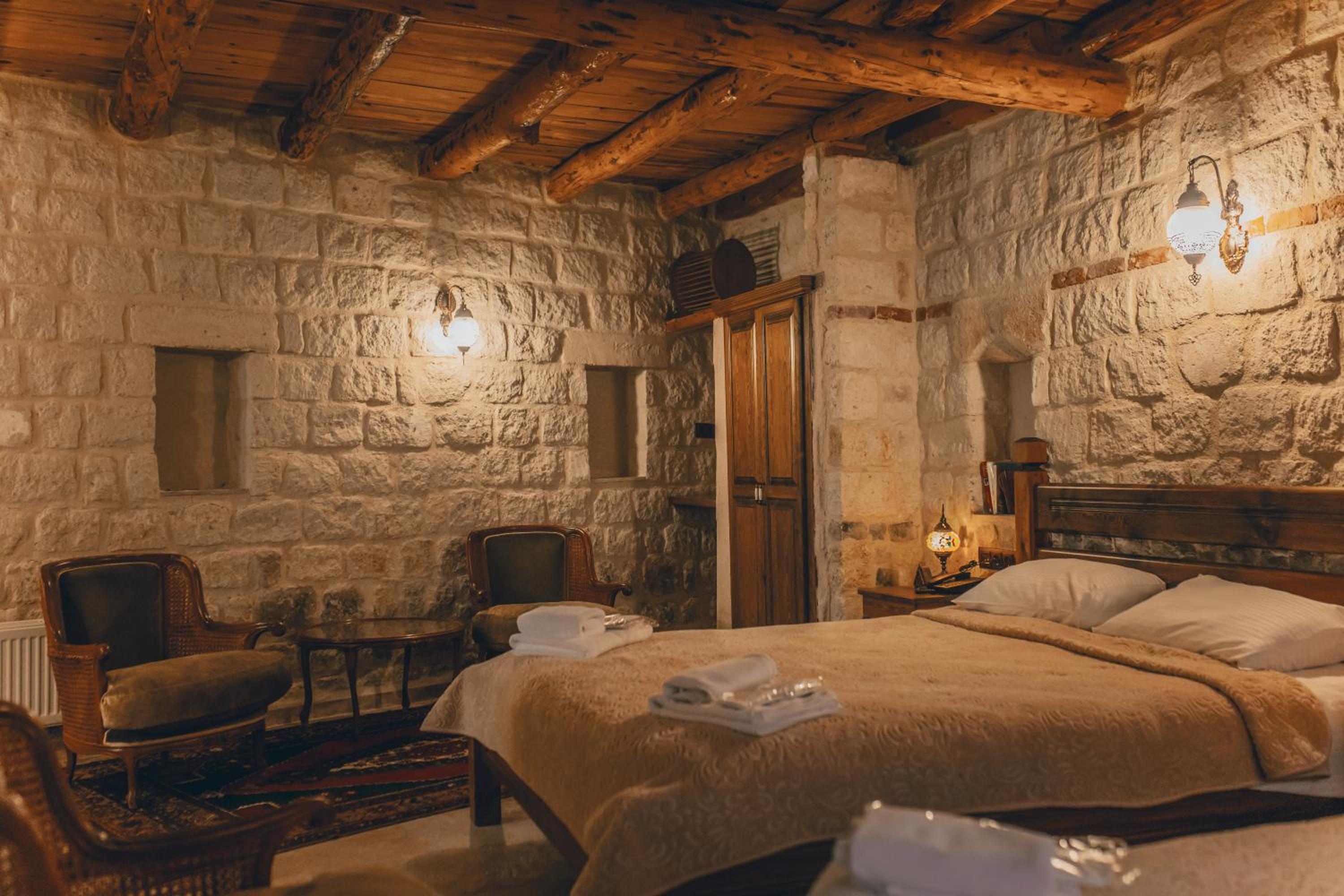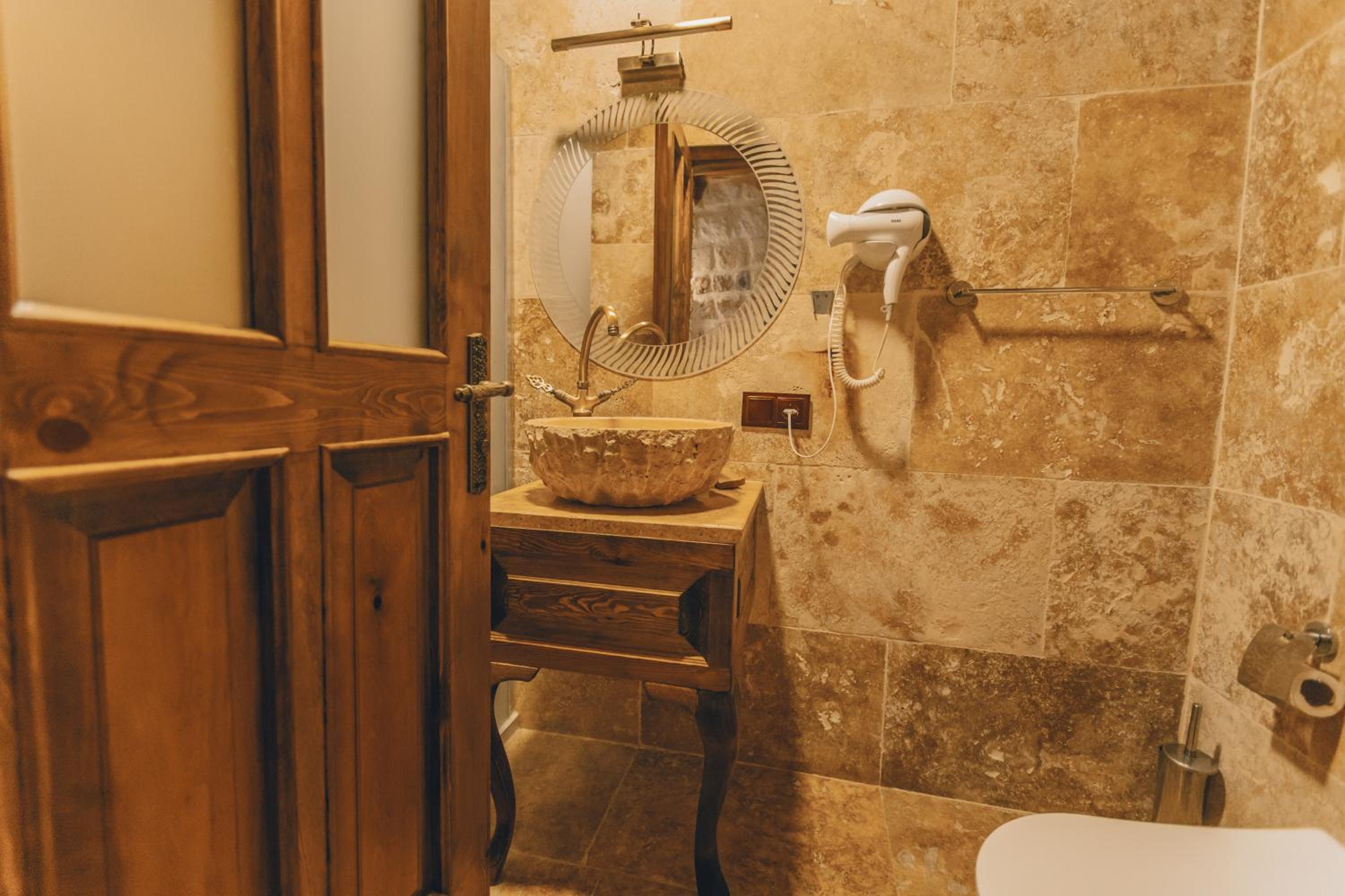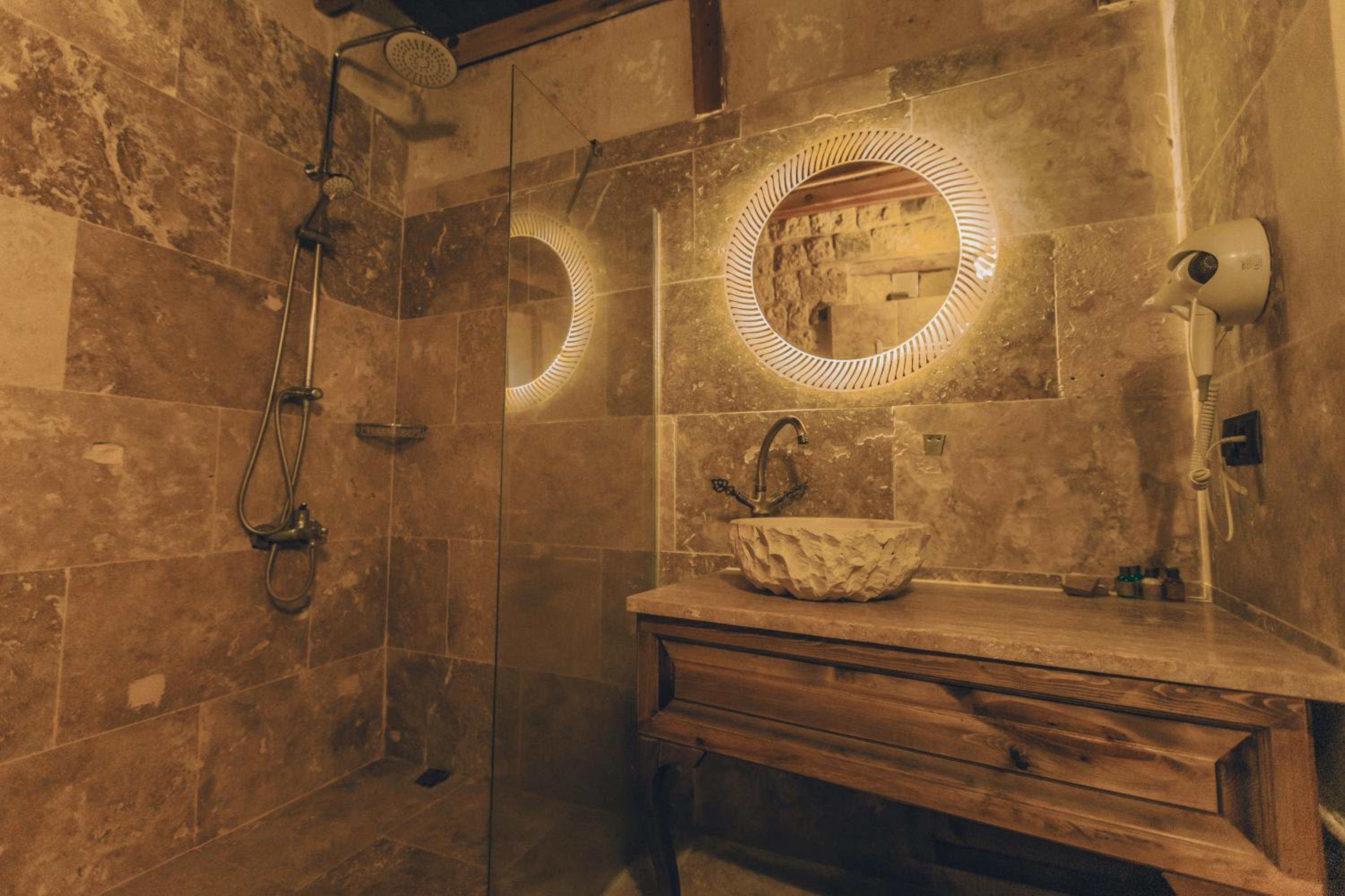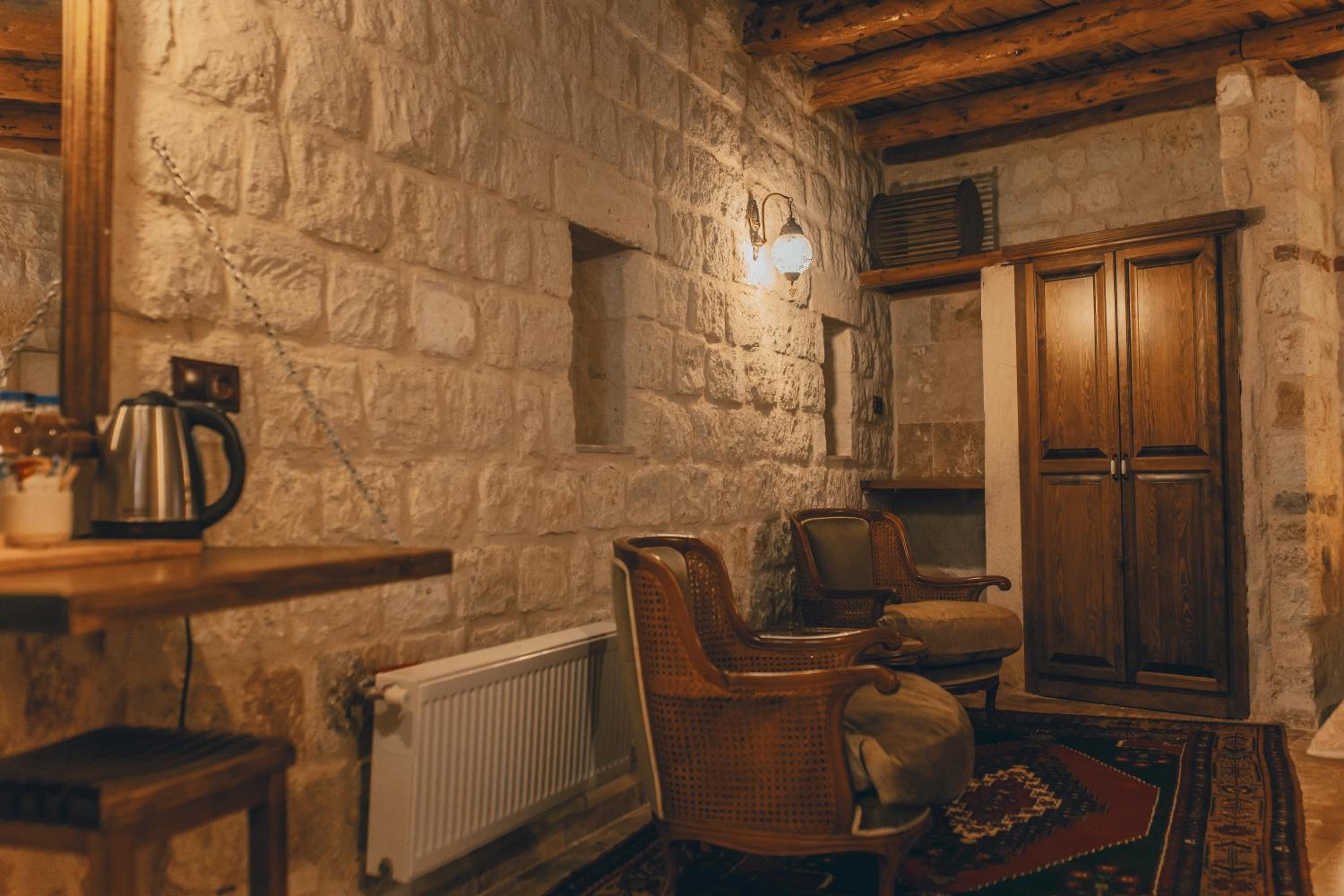 Otel çalışanları çok güler yüzlü ve terasta takla atan güvercinler eşliğinde güzel bir kahvaltı yapabilirsiniz. Biz hamam adlı odada kaldık. En altta dipte tek pencereli ve penceresi bina içine açılan bir odaydı. Oda ışık hiç almıyor, içinde banyo ile beraber bir de hamam var. Gerçek bir mağara deneyimi ancak nefes problemleri yaşayanlar için uygun değil havalanma sıkıntısı var. Bir de oda yerin altında olduğu için baya bir merdiven inip çıkılması gerekiyor. Ancak otelin diğer odaları konum itibariyle ferah ve hizmet güzel.
