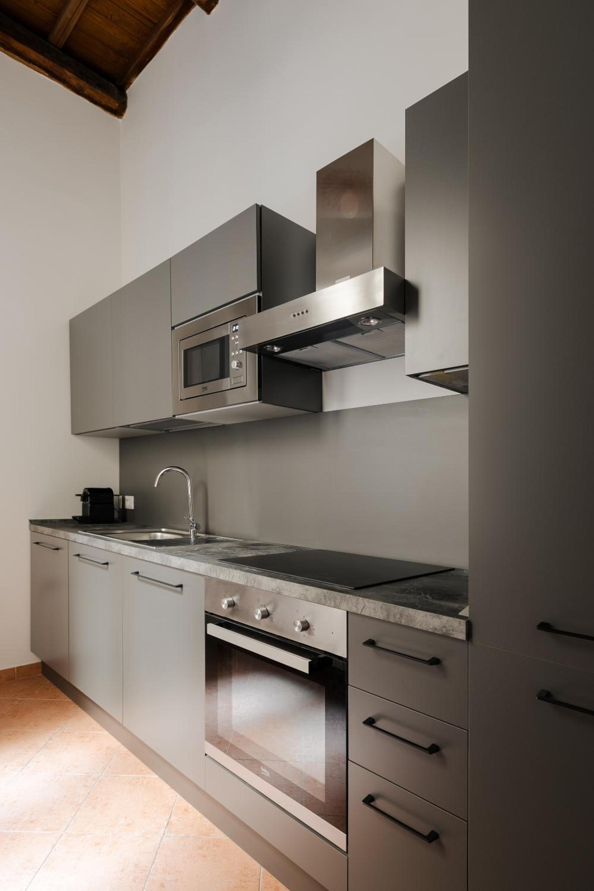 Each unit at our aparthotel is thoughtfully equipped with free WiFi, air conditioning, a flat-screen TV, and a private bathroom with plush towels and bed linen. For added convenience, select units feature a fully equipped kitchen including a dishwasher, oven, and microwave.