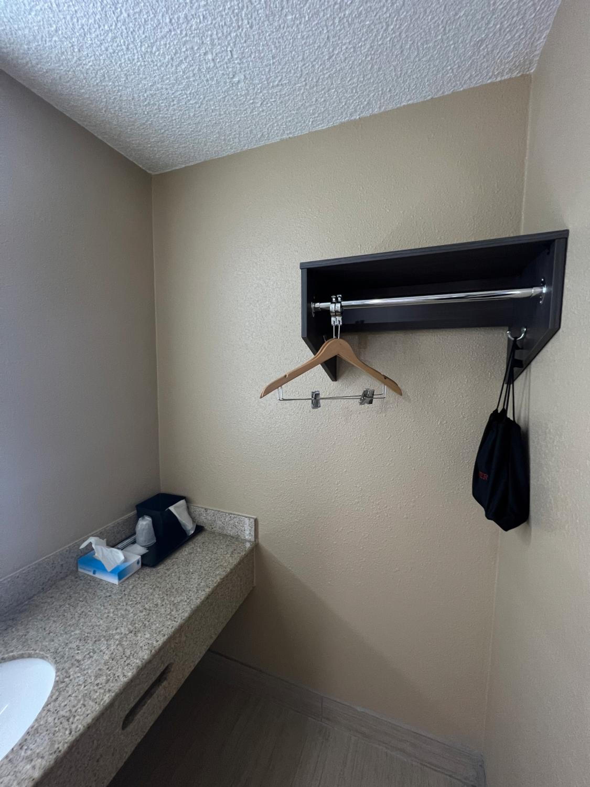 No furniture to sit on in the room other than the bed. No coffee or hot water maker in the room. Bedding had a few cigarette burns even though it was a nonsmoking room.