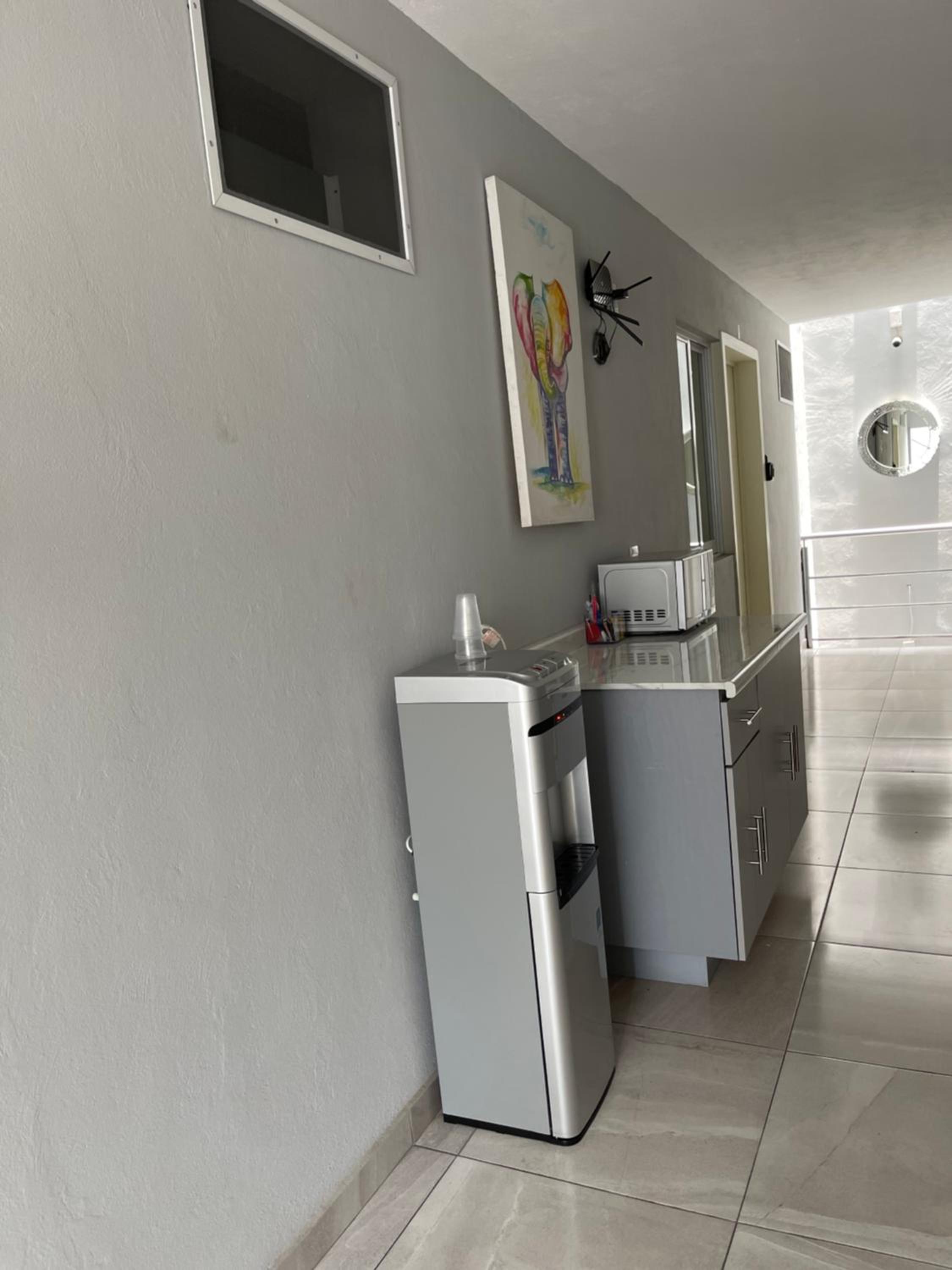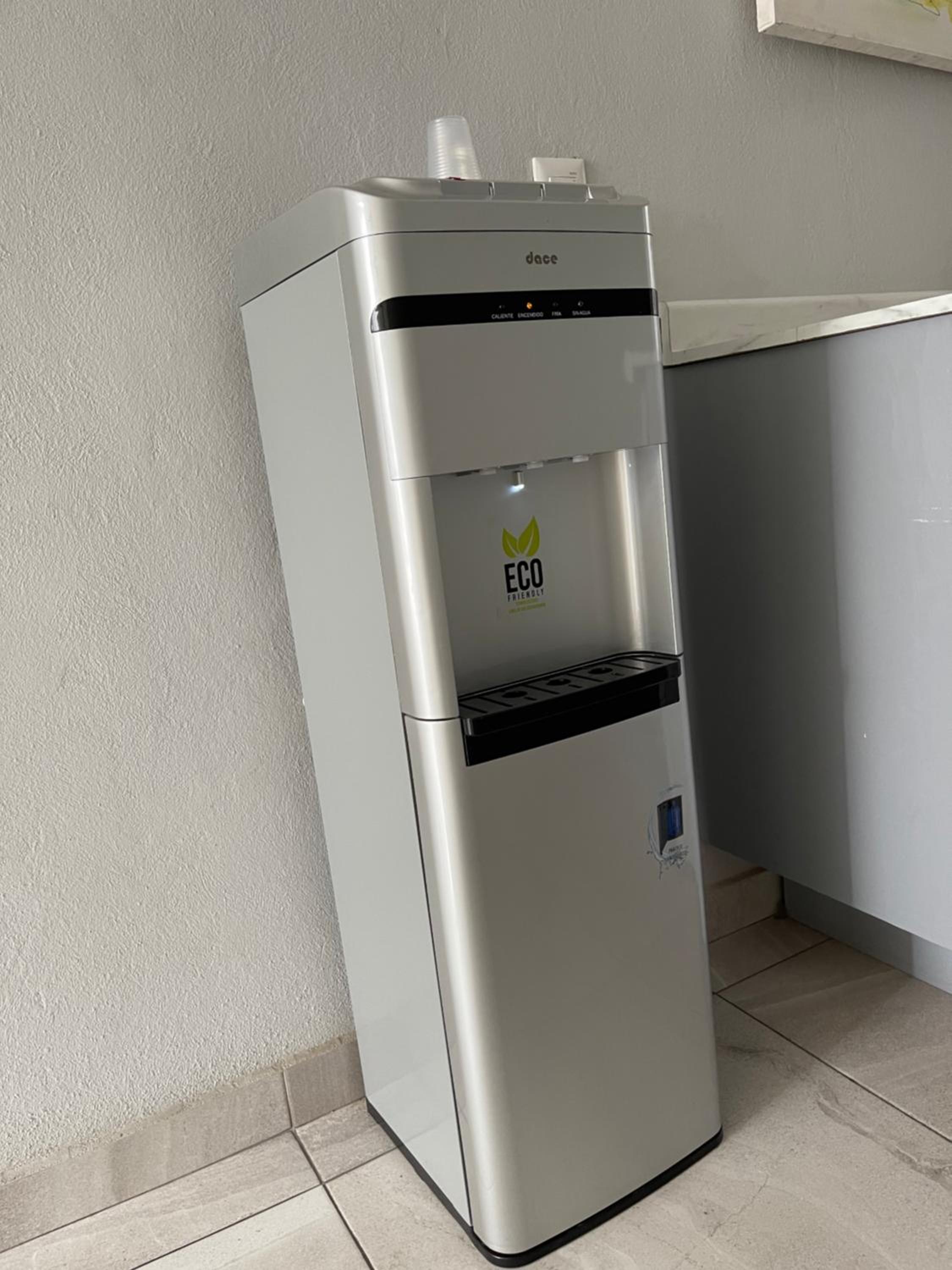 Agua para tomar fría o caliente todo el tiempo, con servicio de café soluble de cortesía.