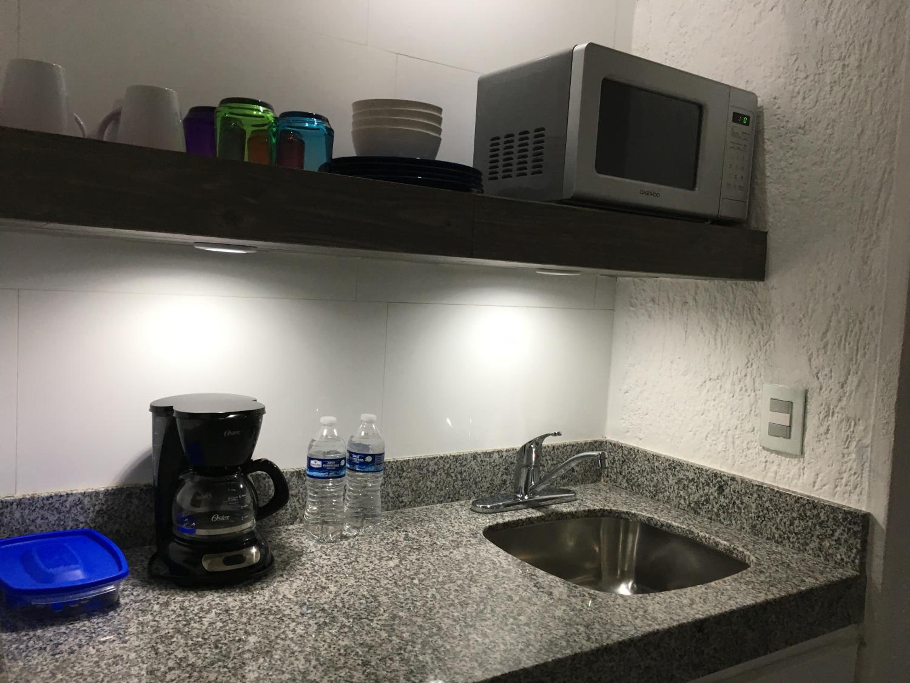 The location was awesome, directly on the beach in Cancun's hotel zone. Big and beautiful pool, view on the sea, kitchen facilities in the room, good food, nice staff, and all for a normal price.