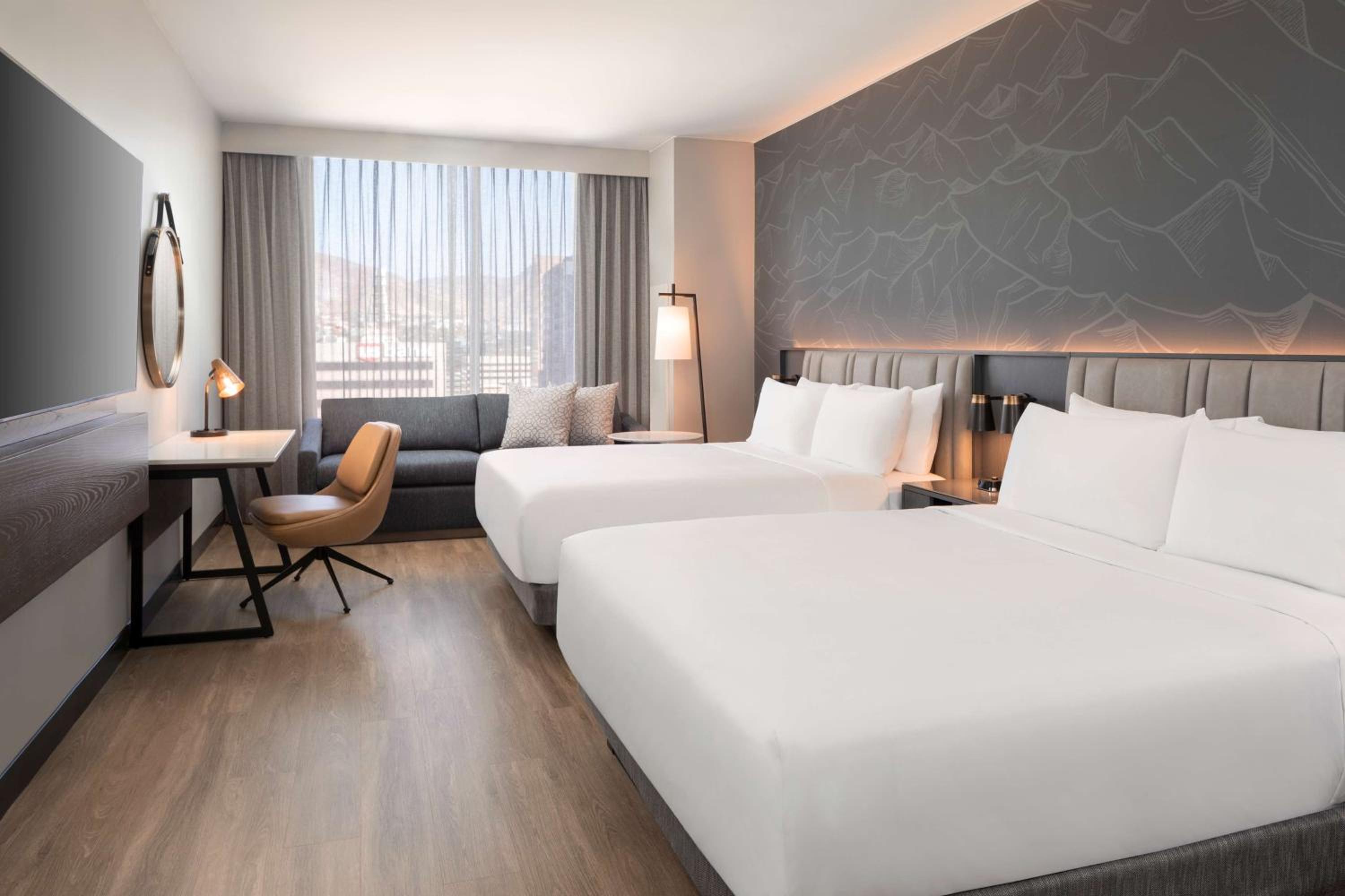 Hyatt Regency Salt Lake City provides air-conditioned rooms with modern amenities including a flat-screen TV and a safety deposit box. Guests can enjoy the convenience of room service and relax in the seating area.