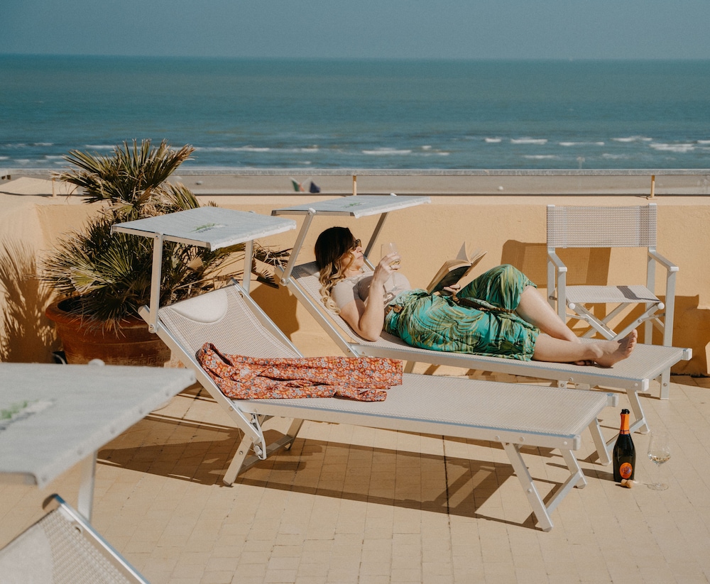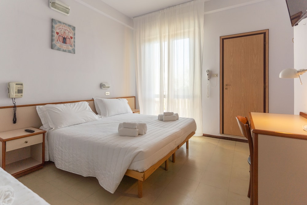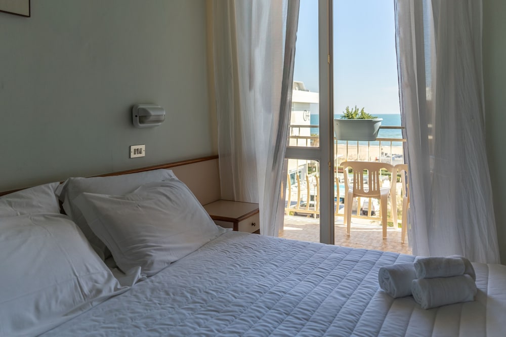 Hotel fronte spiaggia,personale molto accogliente e cortese ,disponibile ad ogni richiesta.noi avevamo due bici e ce le hanno fatto tenere in un posto sicuro ,come pure da apprezzare la flessibilità nell’orario del check out.
