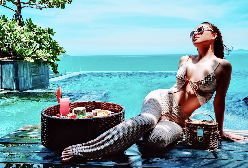 Piękny basen na dachu z widokiem na morze