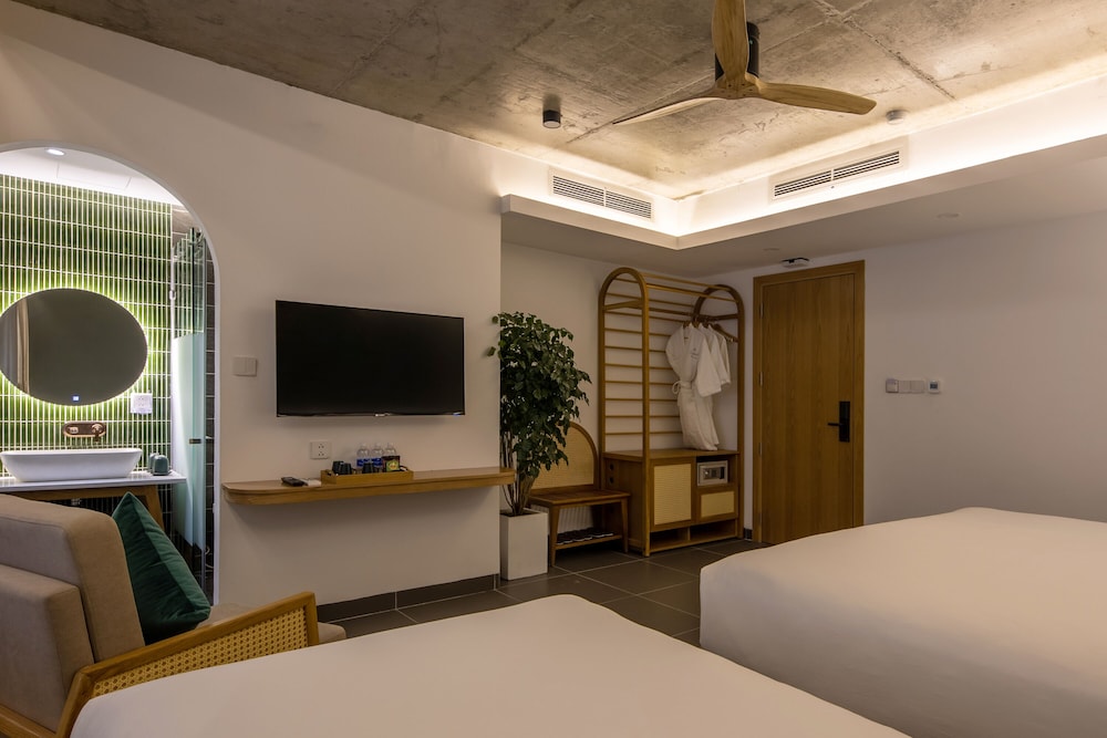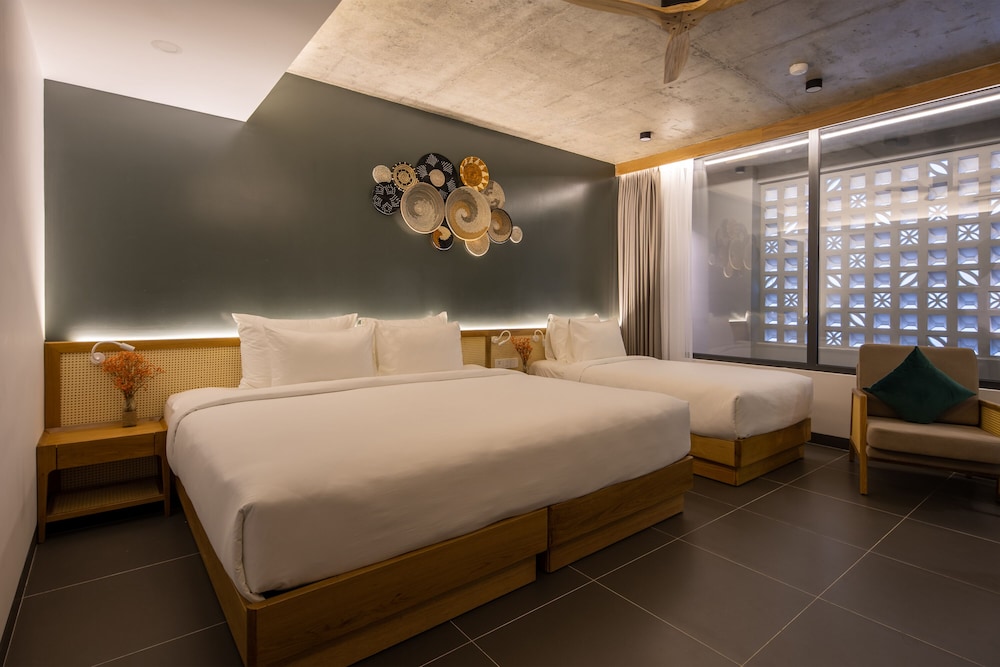 Immerse yourself in a world of comfort and convenience at The Leaf Boutique in Da Nang. Located in the Son Tra district, just a stone's throw away from My Khe Beach and Han River, this beach hotel offers 29 air-conditioned rooms with top-notch amenities. The hotel features an outdoor pool, complimentary Wi-Fi, concierge services, and a coffee shop. Treat your taste buds at the on-site restaurant, enjoy a drink at the bar, and start your day with a delicious local cuisine breakfast. With dry cleaning services, a 24-hour front desk, and free valet parking, everything you need is right at your disposal. Make your reservation today and experience a memorable stay in Da Nang!