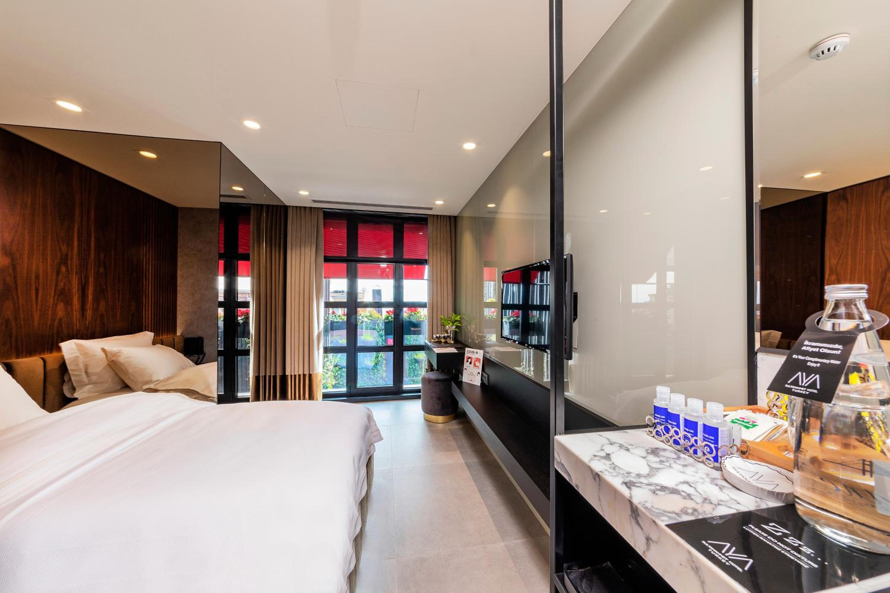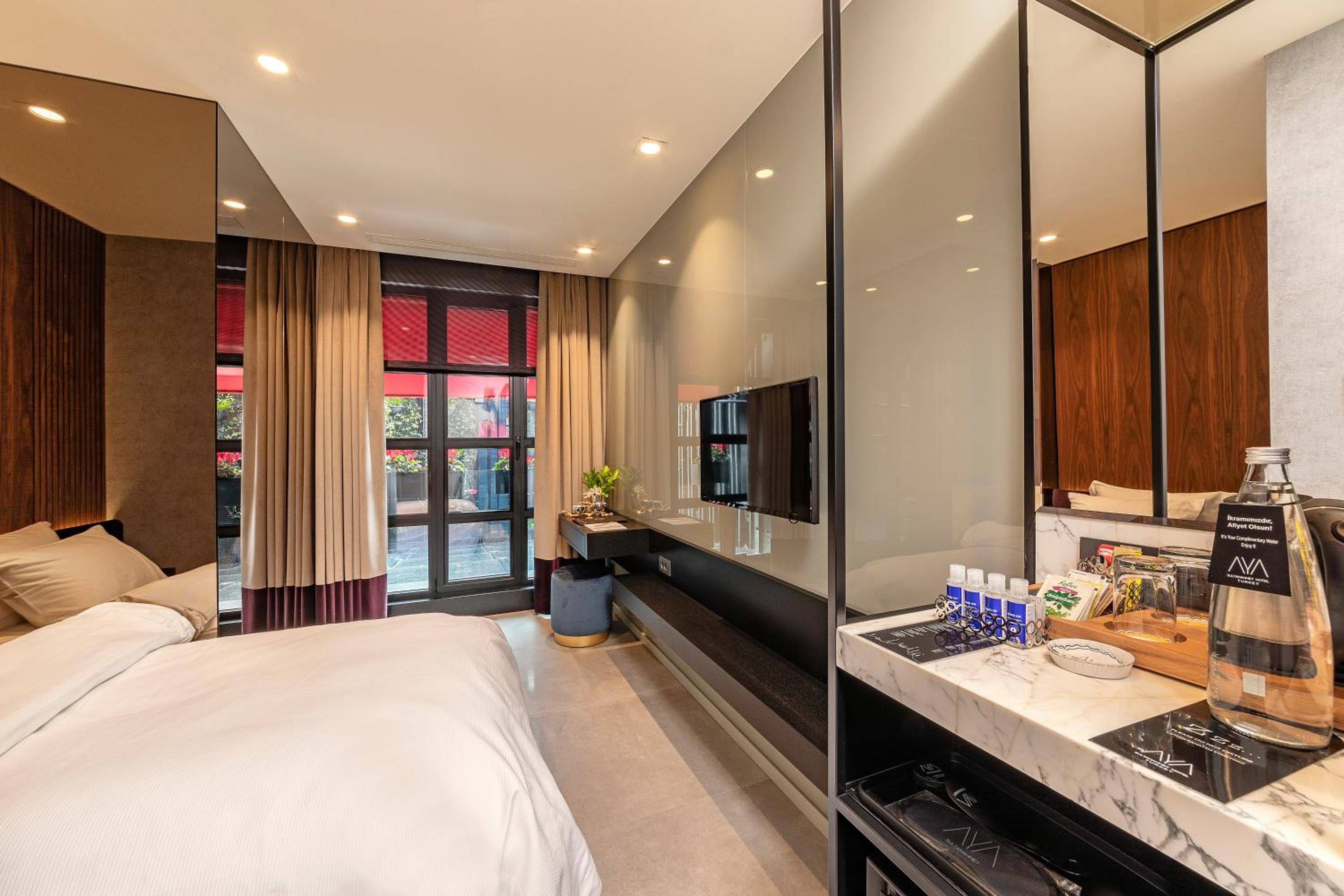 Aya Sultanahmet Hotel offers air-conditioned rooms with modern amenities like a coffee machine, fridge, and flat-screen TV. Guests can also enjoy city views from select rooms and relax with a cup of tea from the provided kettle.