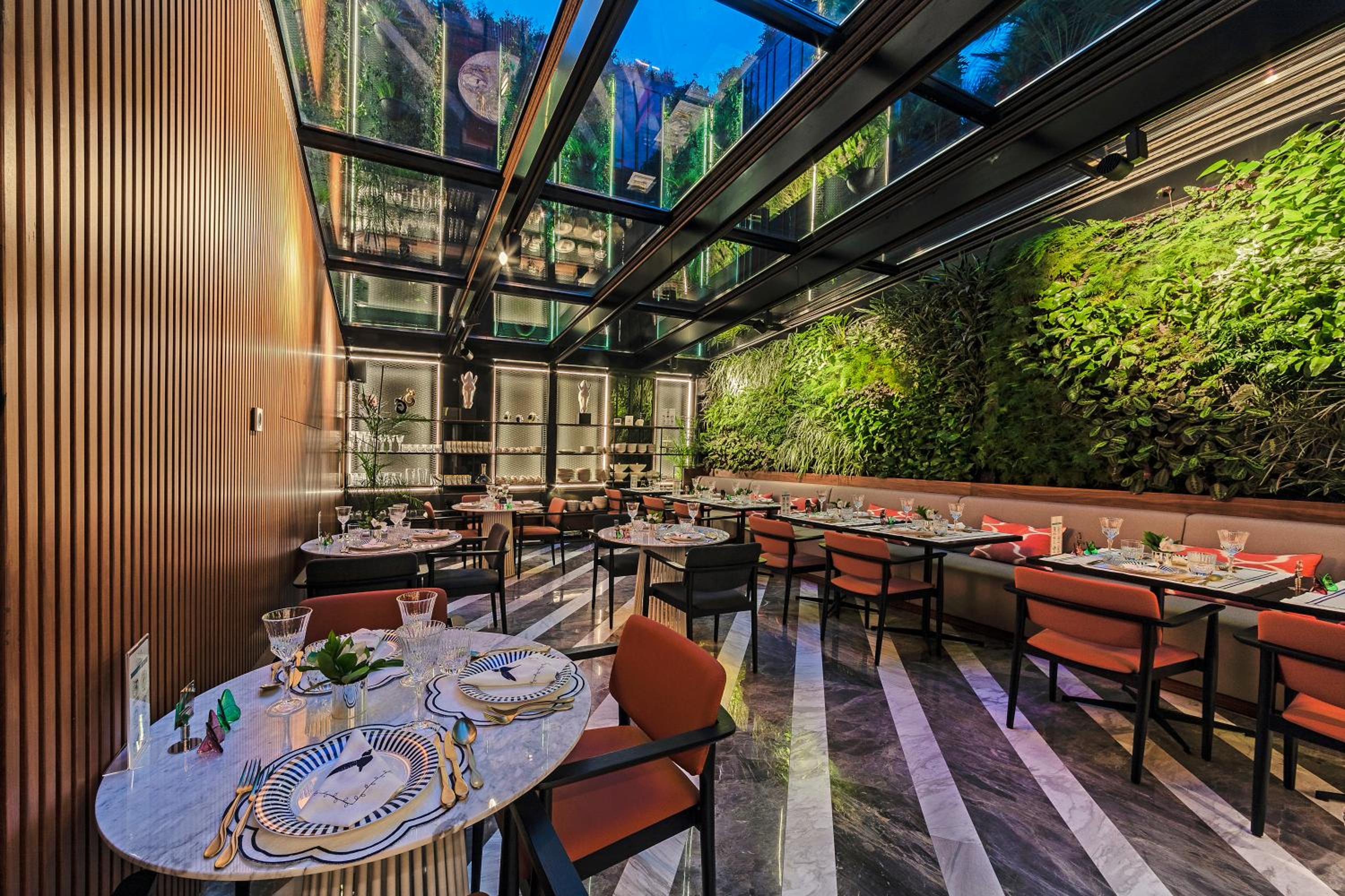 Plenty of eateries to enjoy from. One at the rooftop is overlooking the sea.