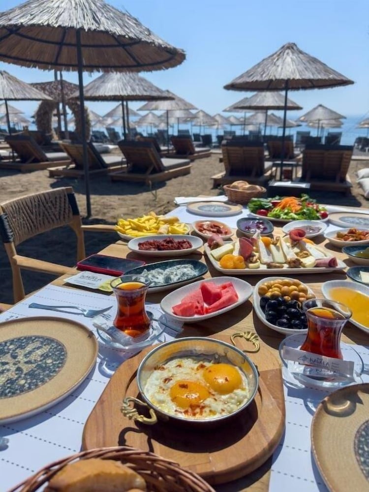 Otelin konumu çok güzel özellikle plaja çok yakın. Ancak sadece bu kadar. Plaj halka açık ücret ile otel misafiri olmayanlar da girebiliyor ancak konaklama yaptığım tarihler hafta içi sezon sonu ve okul zamanı olduğu için gelem kimse yoktu. Sabah erken saatte plaja gittiğimde oturduğum bölümün sadece ücretli için olduğunu benim diğer tarafı kullanabilceğimi söyledi personel. Gecebilceğimi söylediği tarafta zaten ilk 3-4 sıra sezlonglar dolmustu kendi oturduğum tarafta 1 kişi bile yoktu. Kalablaık ve cocuklu aileler ile iç içe oturmak istemediğim için mevcut yerde kalmak için ne yapmam gerektiğini sordum 750₺ ücreti olduğunu söyledi :)