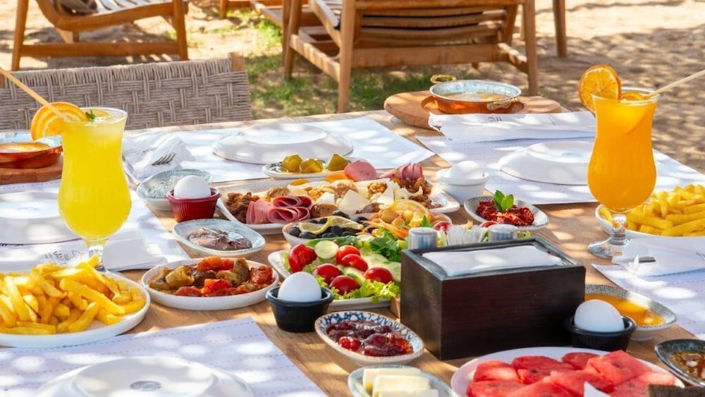 wenn ich 240 Euro für eine Nacht inkl. Frühstück bezahle erwarte ich frischen Kaffe, Saft und genügend Auswahl an Auflagen etc. Kaffe und Saft musste man extra bezahlen. Auf Nachfrage an der Rezeption gibt es nur türkischen Tee und eine Flasche Wasser zum Frühstück. Absolutes NoGo!!!! Tische wurden vom Personal nur auf zuruf neu gedeckt. Beim Teekocher waren überall Pfützen, Gläser haben gefehlt, keine Teelöffel und und und... Nuggets und Pommes zum Frühstück waren labbrig und kalt. Nichts war beschriftet. Es gab nichtmal Rührei nur gekochte Eier den ich nicht ganz vertraut habe! Frisches Brot musste man sich selber schneiden, eigentlich kein Problem aber stumpfe Messer und kein Tuch um das Brot zu halten. Die Gäste haben Servietten benutzt um das Brot zu schneiden. Die Köchin kam mal sporadisch vorbei und hat bißchen in den Salaten rumgestochert und war schon wieder weg. Ich empfehle einen Restaurantleiter!!Am letzten Tag hab ich das Frühstück ausgelassen. Total entnervt.