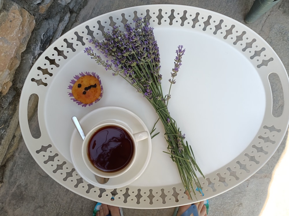 This is a lovely place away from high tourist traffic. The room is very comfortable with everything you might want. The decore is wonderful and the breakfast outside was delightful. We would definitely stay there again.