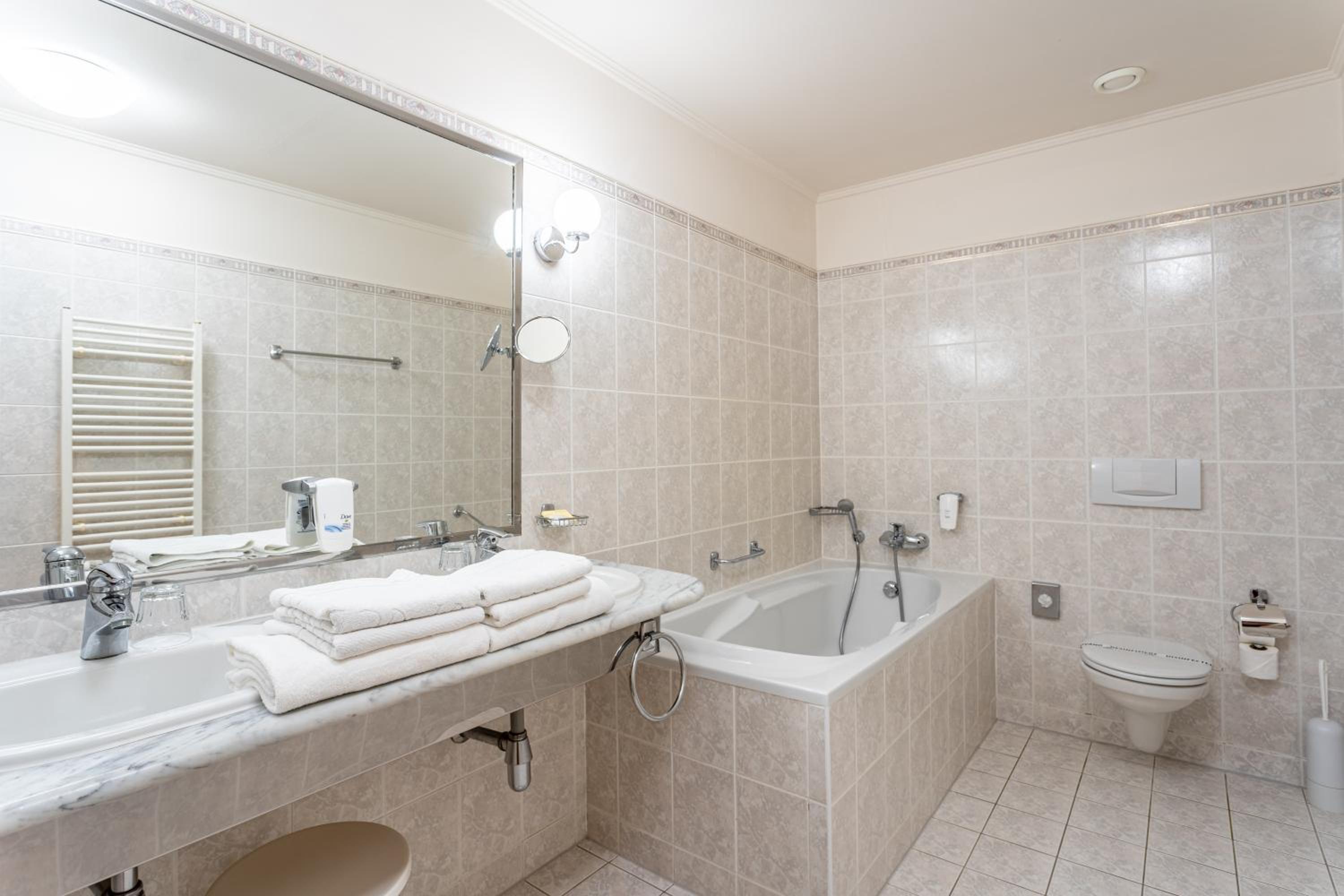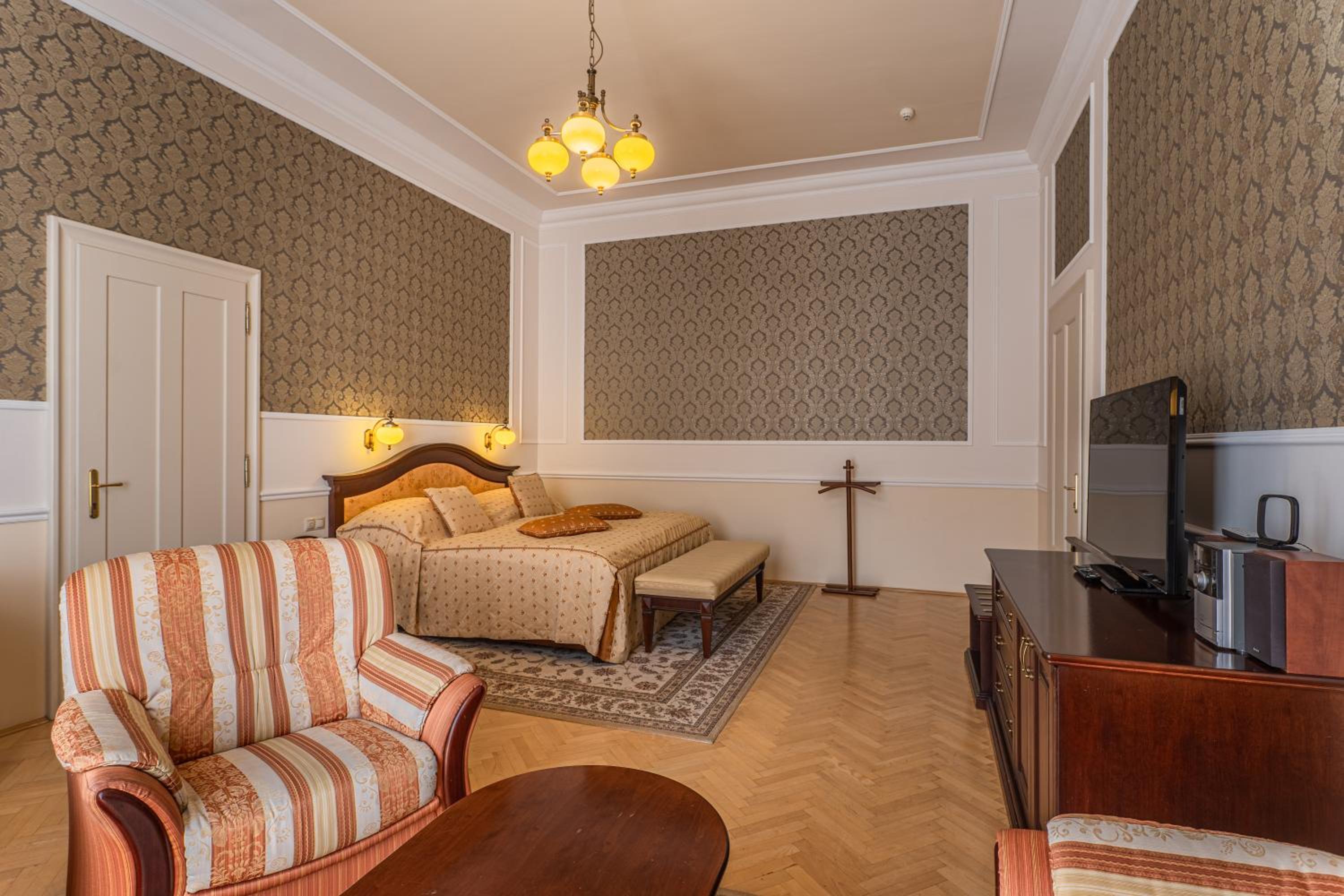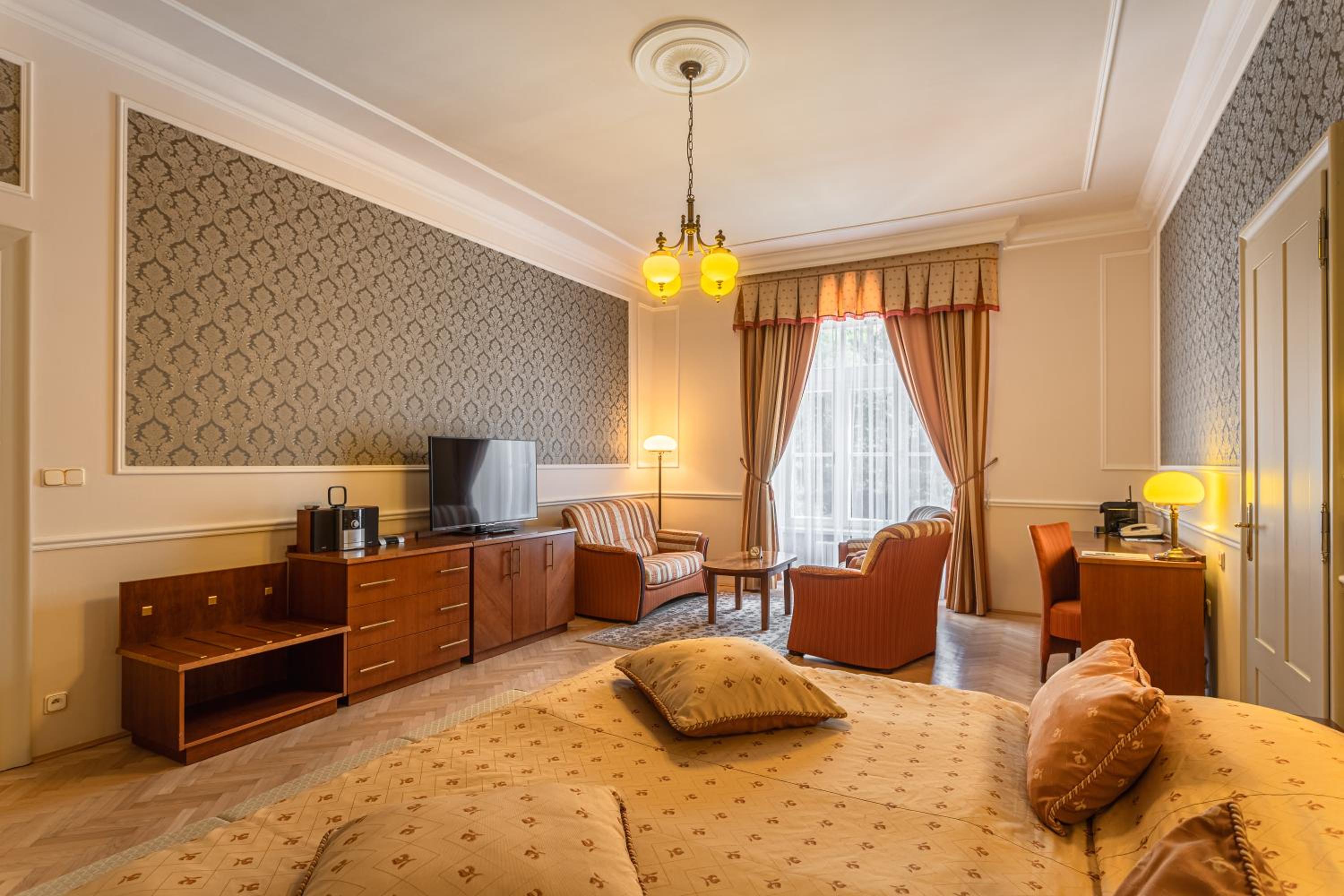 Velký výběr jídla na snídani, oceňuji domácí pomazánky. Jen bych uvítala větší výběr ovoce, ale vzhledem k ročnímu období to bylo OK. Hotel je krásný, udržovaný, vybudovaný ve stylu vídeňského neoklasicismu, dle mého názoru jeden z nejhezčích v dané lokalitě.