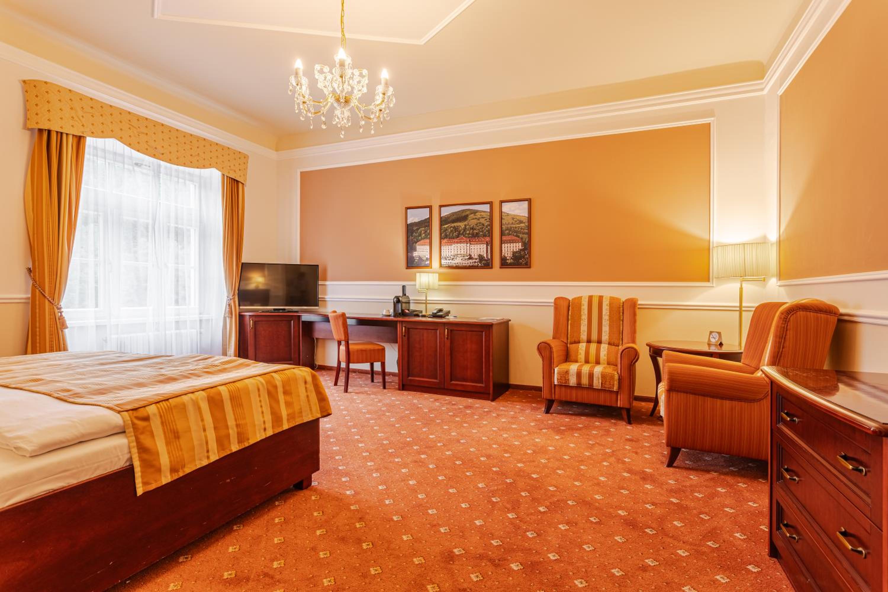 Gastronomic Delights and Scenic Views: Start your day with a hearty buffet breakfast, savor delectable dinners, and sip on refreshing beverages while admiring the picturesque Jáchymov countryside from the spacious terrace.