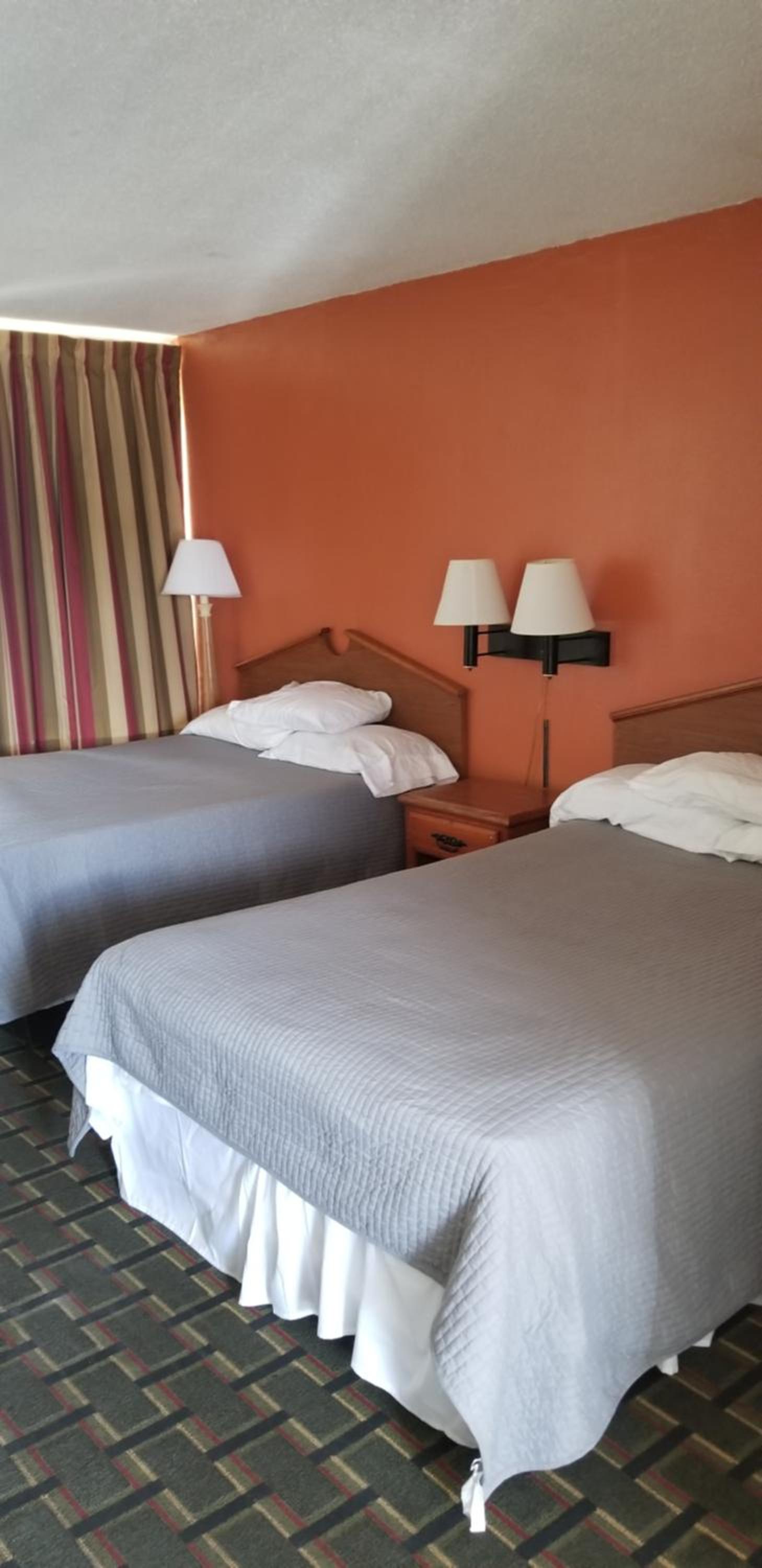 The room was deceiving from the pics sent . No office. Was manned by a hotel across the street that smelled of weed. Only access to the office was to ring a bell. Brown sheets and stained sheets on one bed. You would