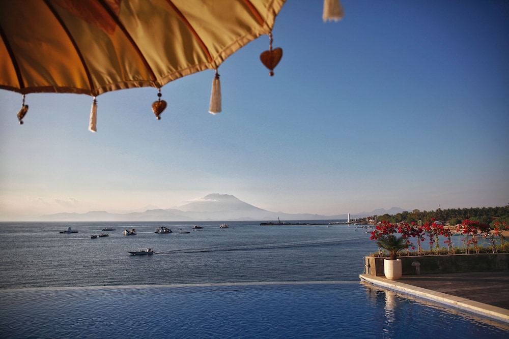 Nous avons adoré notre séjour dans cet hôtel vraiment superbe, avec une vue à couper le souffle sur la mer et le Mont Agung en toile de fond. La piscine est très agréable et bien intégrée à l’environnement naturel.