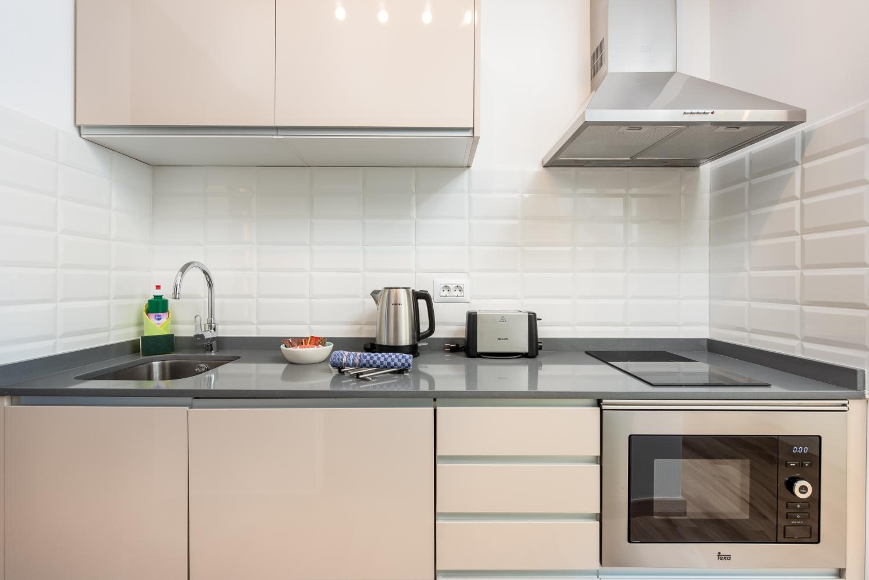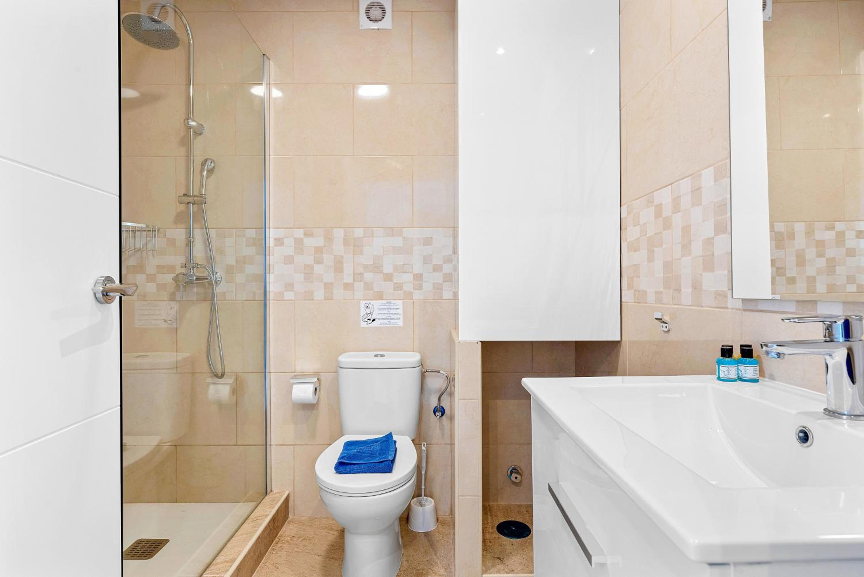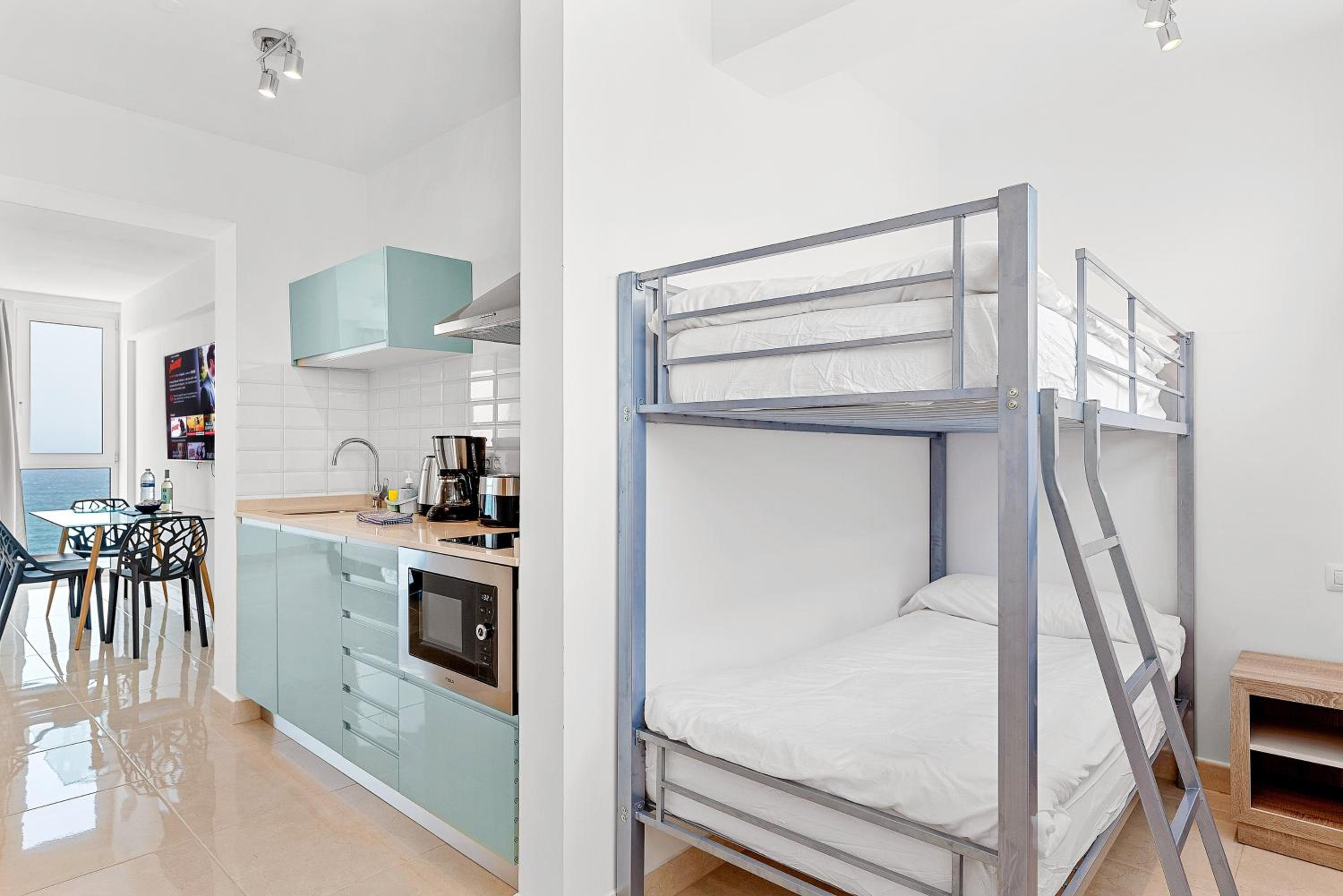 I sent a message asking for extra bedding befiore we arrived as was told it was in the room. But there was one blanket, and since there was no duvet for the sofa bed. we had to use the blanet to keep our daughter reasonably warm at night. The next day the cleaner found us two blankets and that made us all more comfortable at night. There were no dinner plates, only small plates and soup dishes. We had expected to see the ocean while we had breakfast, but the table was against a wall and the ocean view depended on two small windows, one of which had a notice on it to say it was broken. The sofa bed we struggled to operate but during the day it was the only comfortable seat. This meant three of us sitting in a line - fine if you jst want to watch the TV, we we like to read and talk. A comfortable chair would have been welcome, rather than having to use the hard plastic chairs around the table. The lighting in the main room was poor for reading. The tiled floor was suitable for kitchen and bathroom but it was throughout the apartment, giving it rather a stark feel. A coffee table would have been good. The apartment is clearly designed for the owners to manage with minimun effort when it came to cleaning. When the induction hob stapped working one evening, the only number to ring for help was the mergency number - and the person who responded was irritated that this was not an emergency in his book, and put the phone down on me. It was sorted the next day - but worth noting any minor problems can only be dealt with when the reception was open - from 9.30am to 5.30pm. After that, you're on your own.