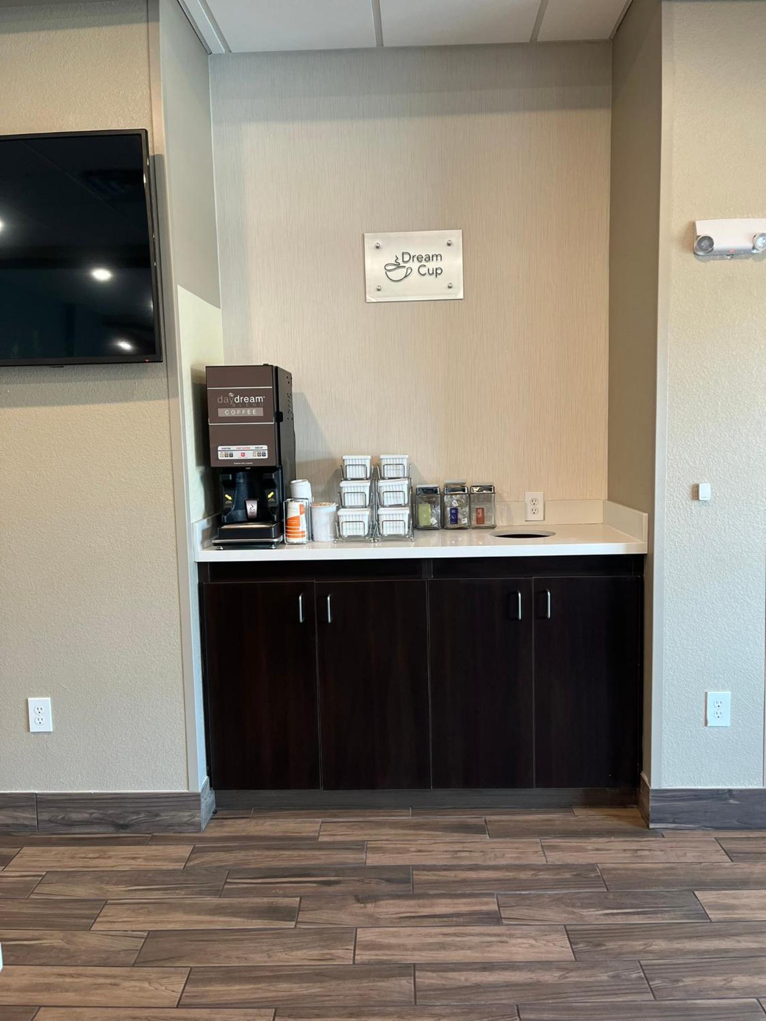 Worked out great, clean, friendly and efficient staff, basic complementary continental breakfast. Comfortable beds, great pillows. Stayed for four days for a hockey tournament, the refrigerator, microwave, and free breakfast saved us a lot of money.