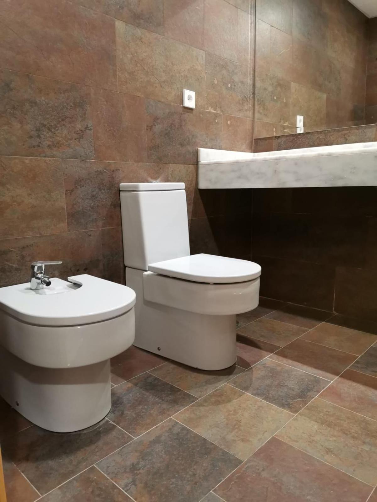 El baño un poco viejo pero limpio. Las paredes un poco sucias, le falta un poco de mantenimiento.