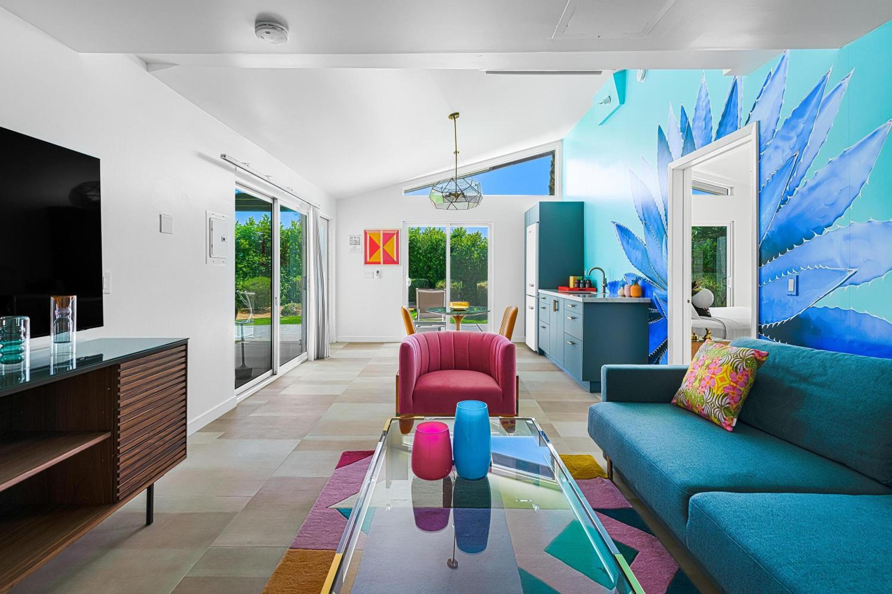 This place is lovely! Like the separate cottage like room, large with sitting areas, bright beautiful colors and wall art.