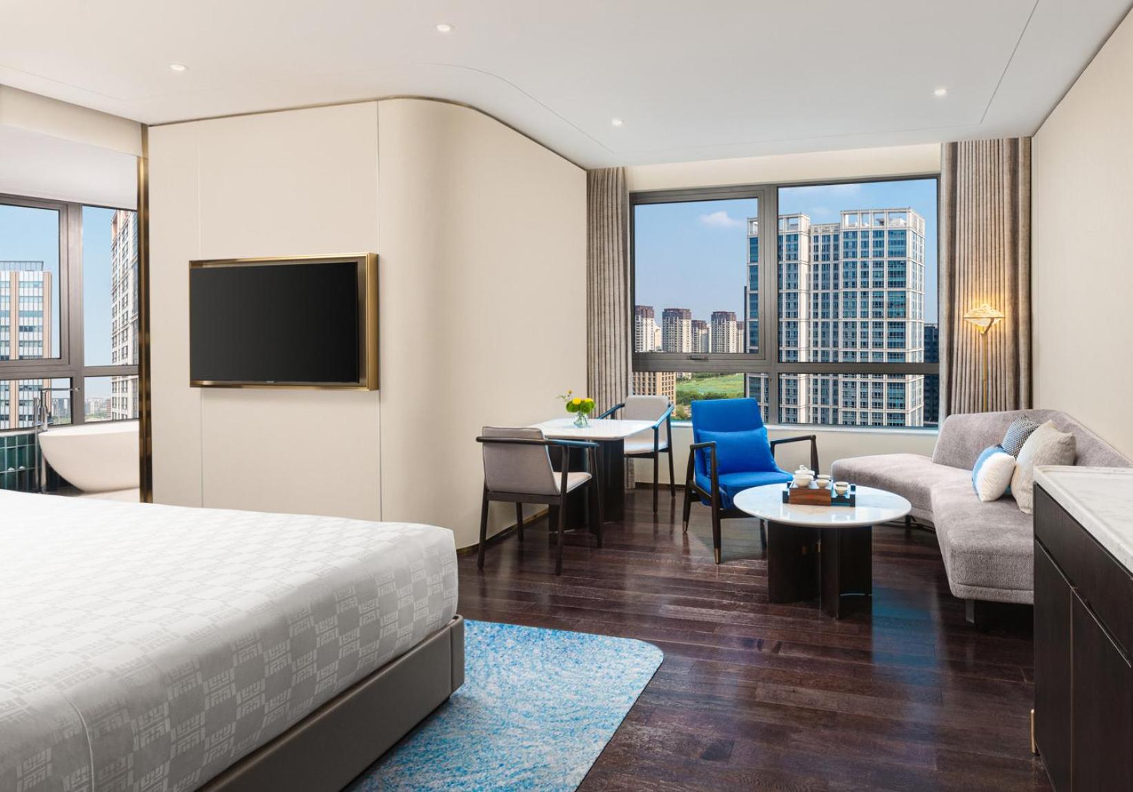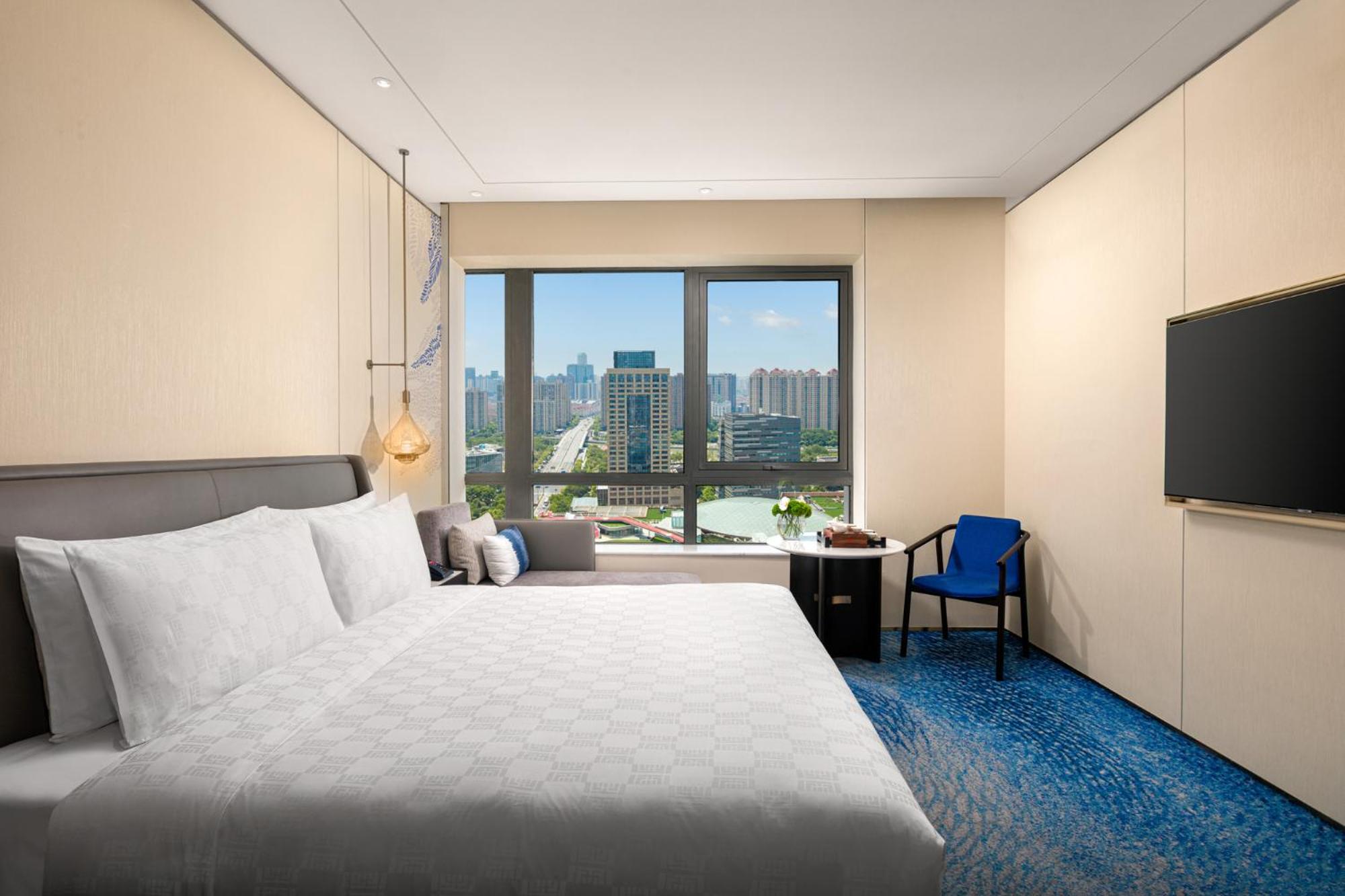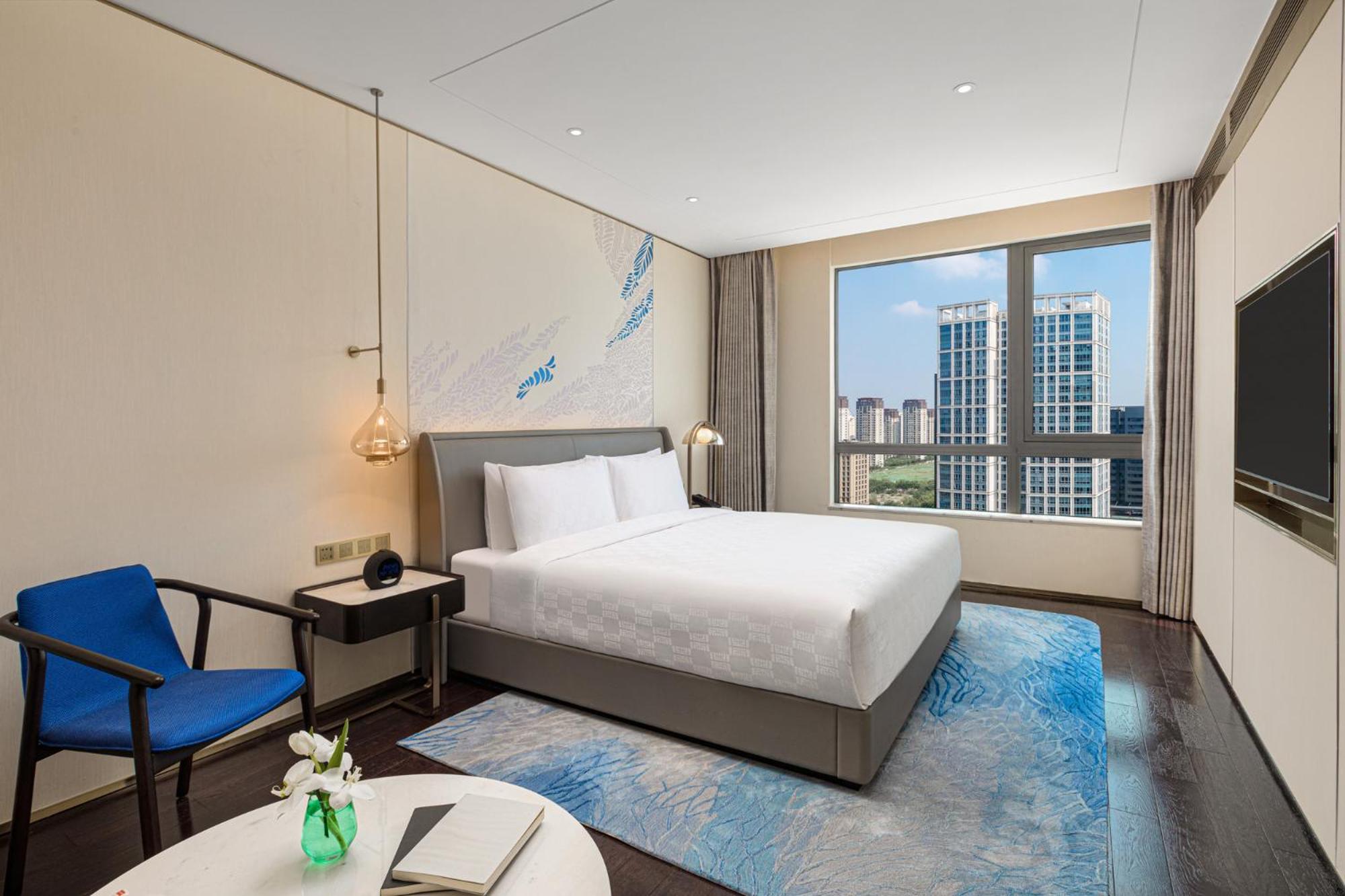 Experience the elegance of 312 rooms and suites at HUALUXE Shanghai Changfeng Park. Each room offers a luxurious retreat after a day of business or leisure activities.