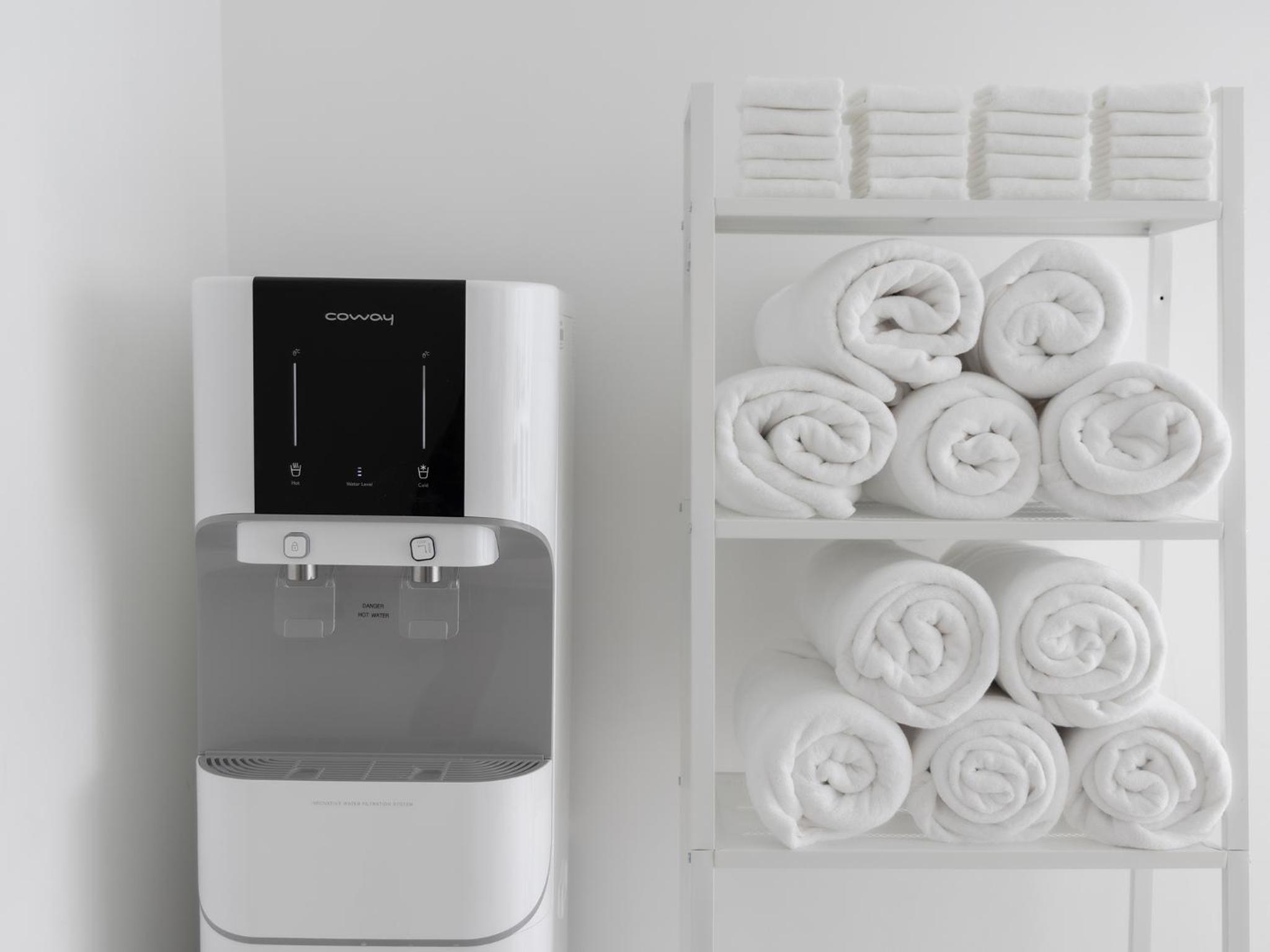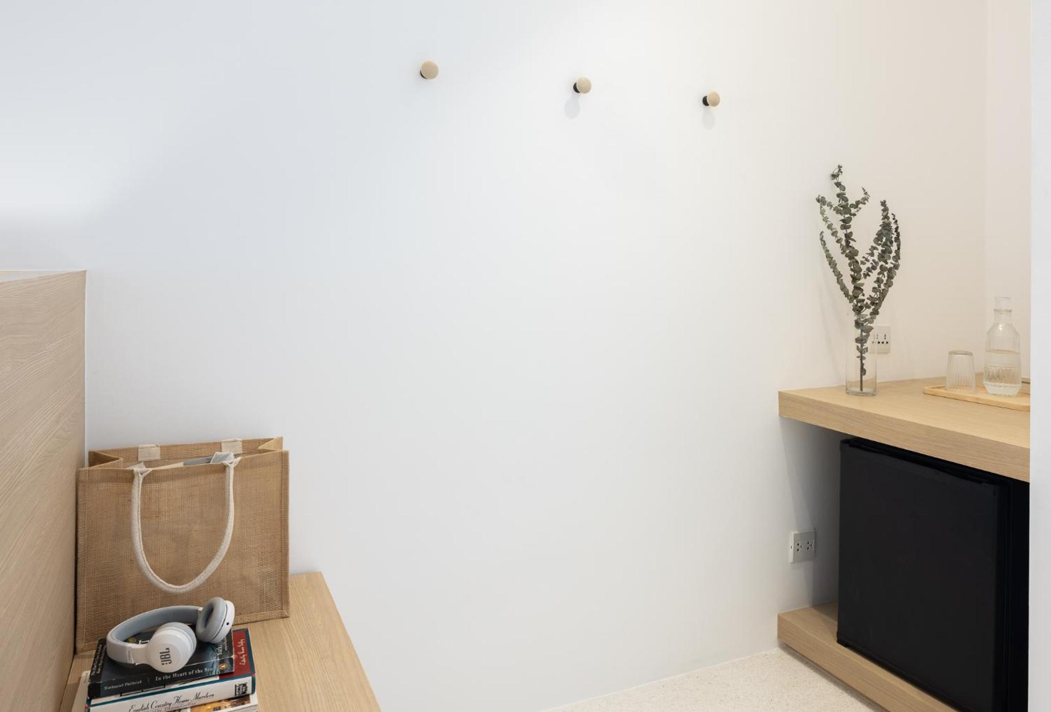 Very clean, friendly staff, 7 mins walk to one niman , cute shops and eateries nearby. The free happy hour drinks and snack at 5pm to 7pm very good. Drinks in fridge were free and they would refill.