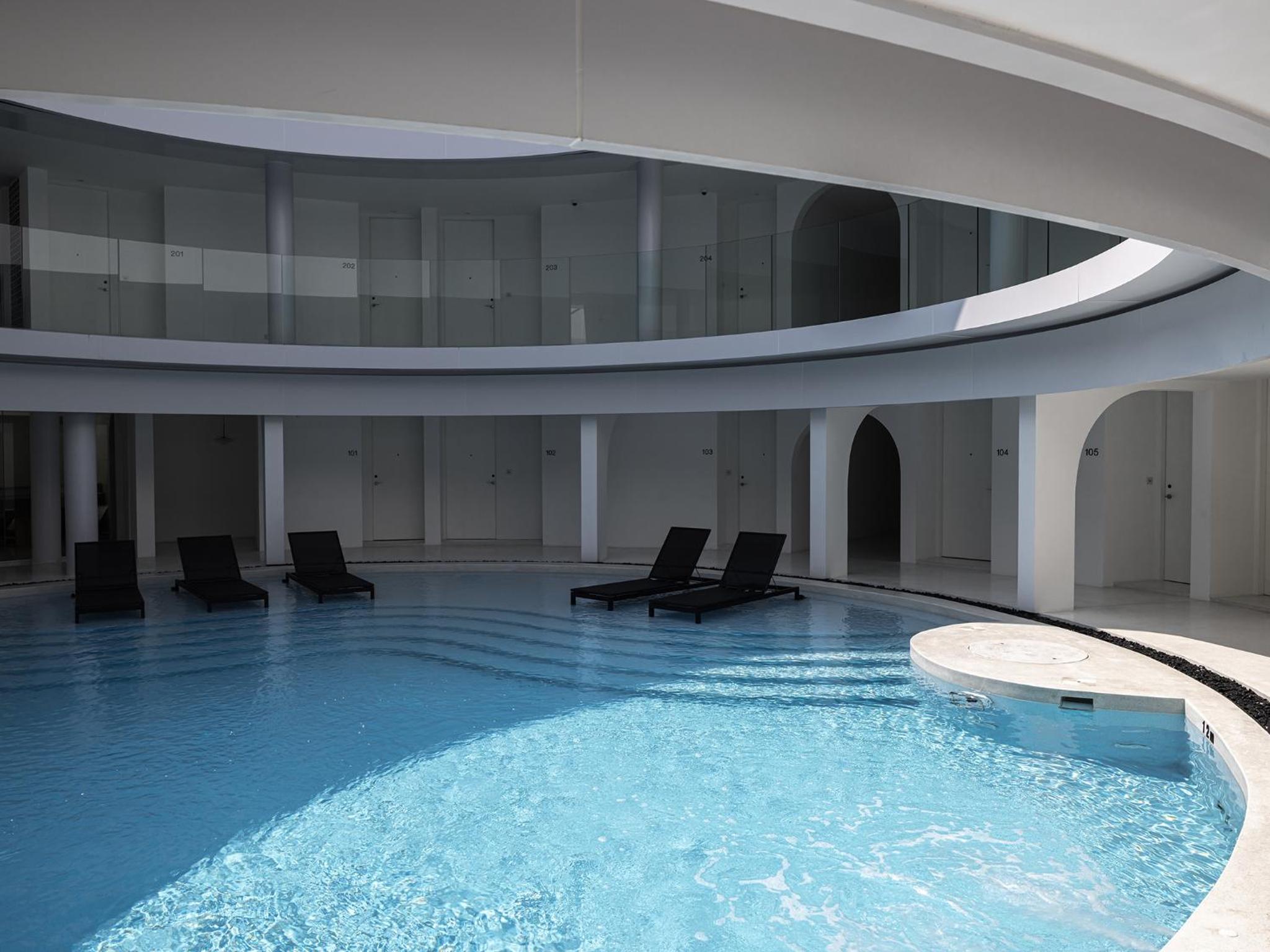 The hotel is in a nice area with cafes, restaurants and massage areas right infront of it. the design of the hotel makes people stop and take pictures. the pool also is amazing.