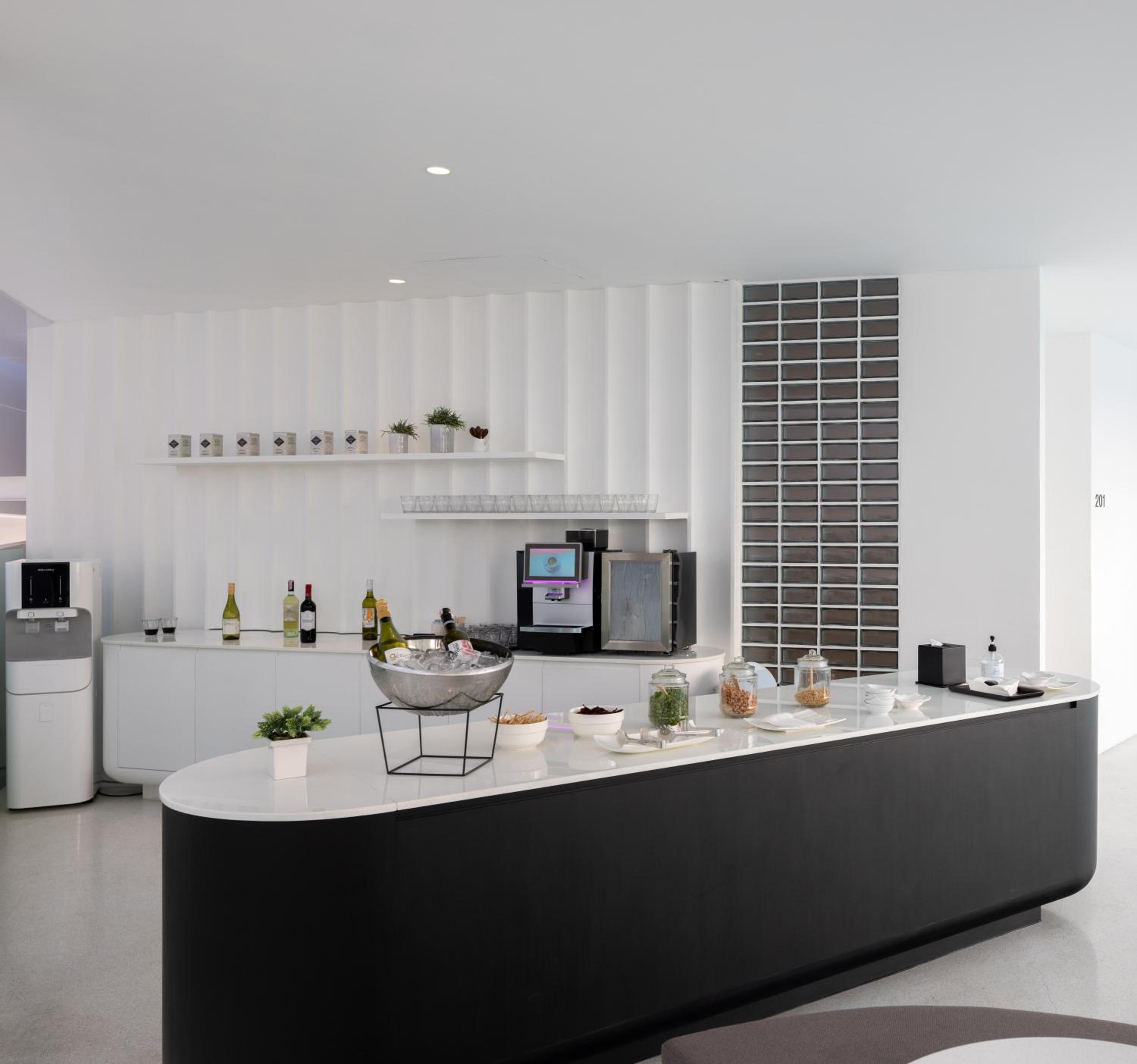 Amazing Design , cleaness, very friendly staff, free refill drinks from fridge , the happy hour that provided wine and snacks