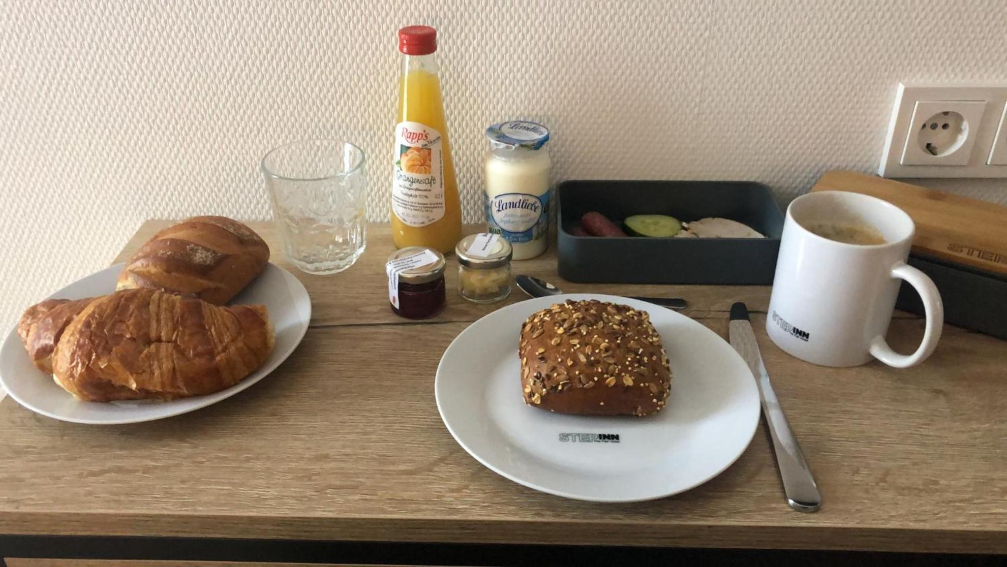 Lediglich 2 Teller, Tassen, Gläser. Gefehlt hat Besteck um sich selbst versorgen zu können.