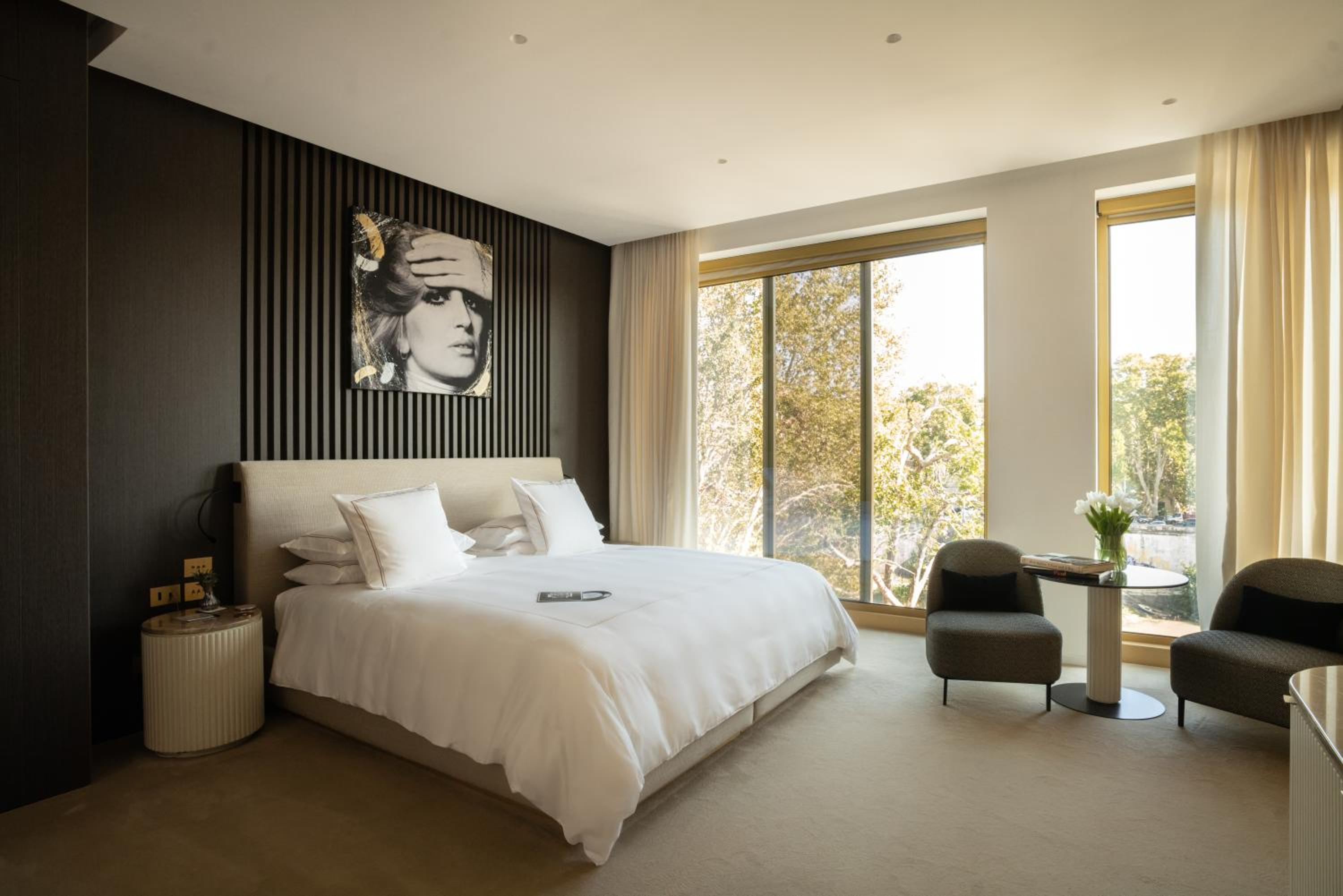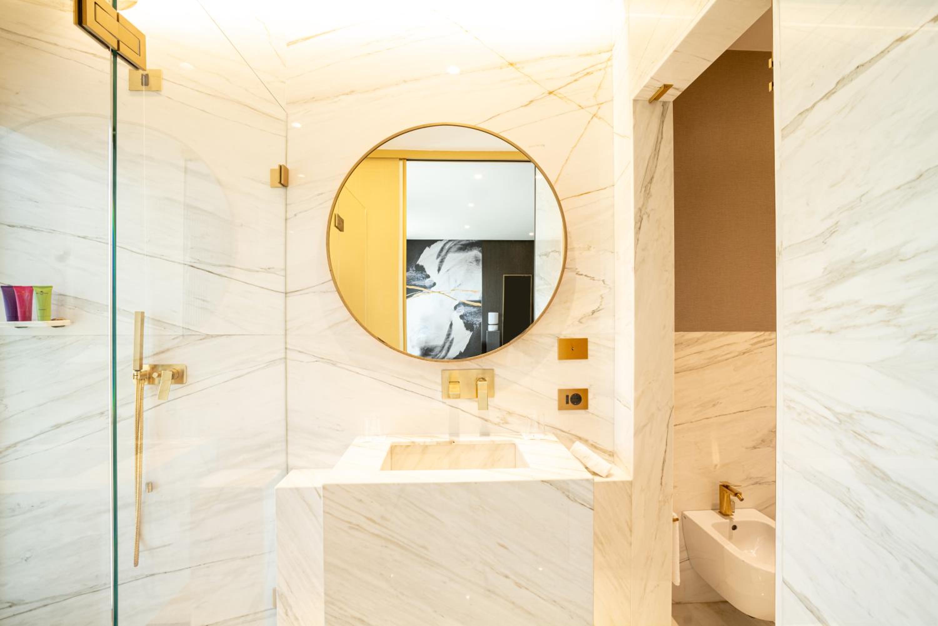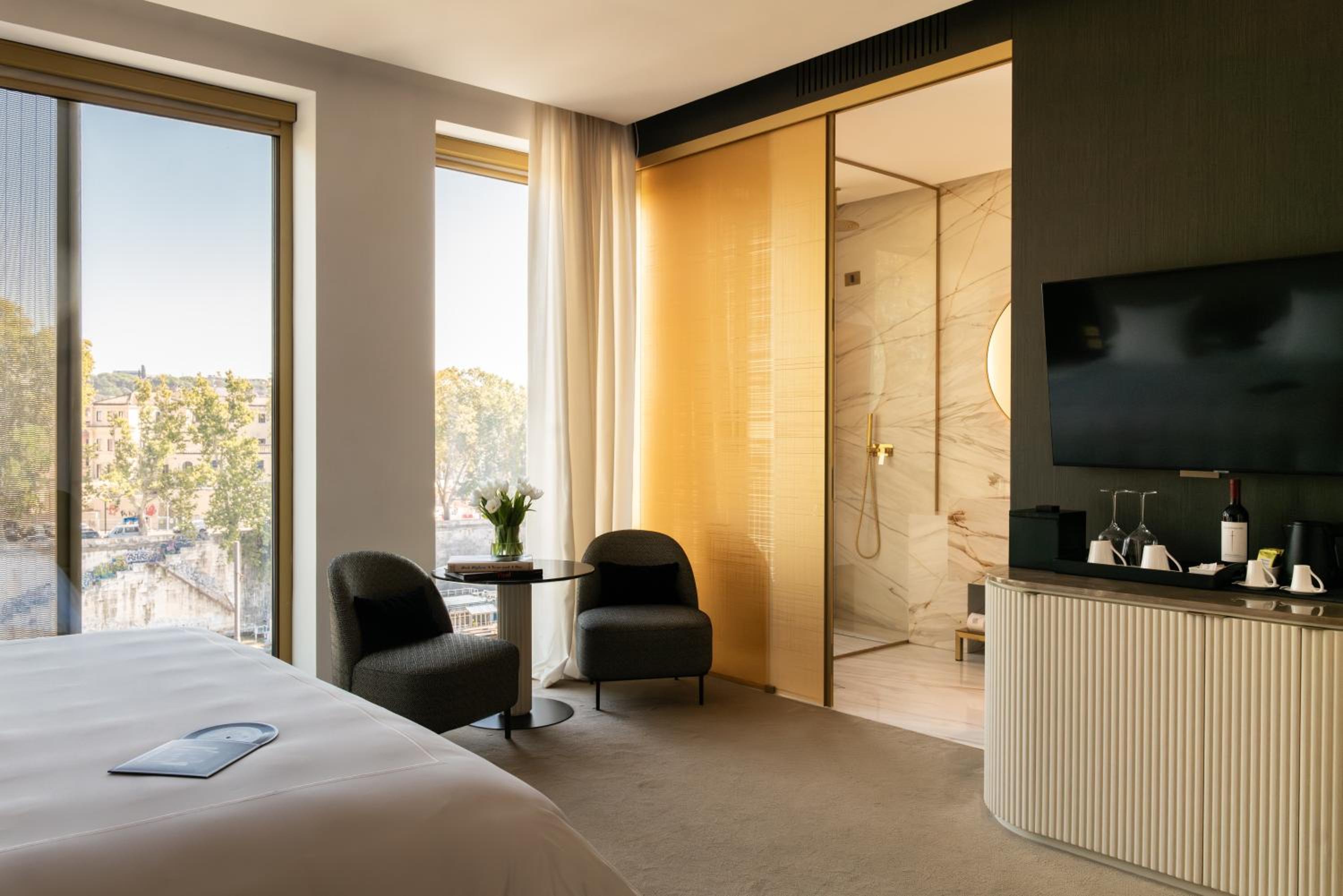 Experience the epitome of luxury at The First Musica in Rome. Indulge in our 5-star hotel's beautifully designed non-smoking rooms, each equipped with modern amenities like air conditioning, flat-screen TVs, and plush bedding. Some rooms even boast stunning city views and a coffee machine for your convenience.