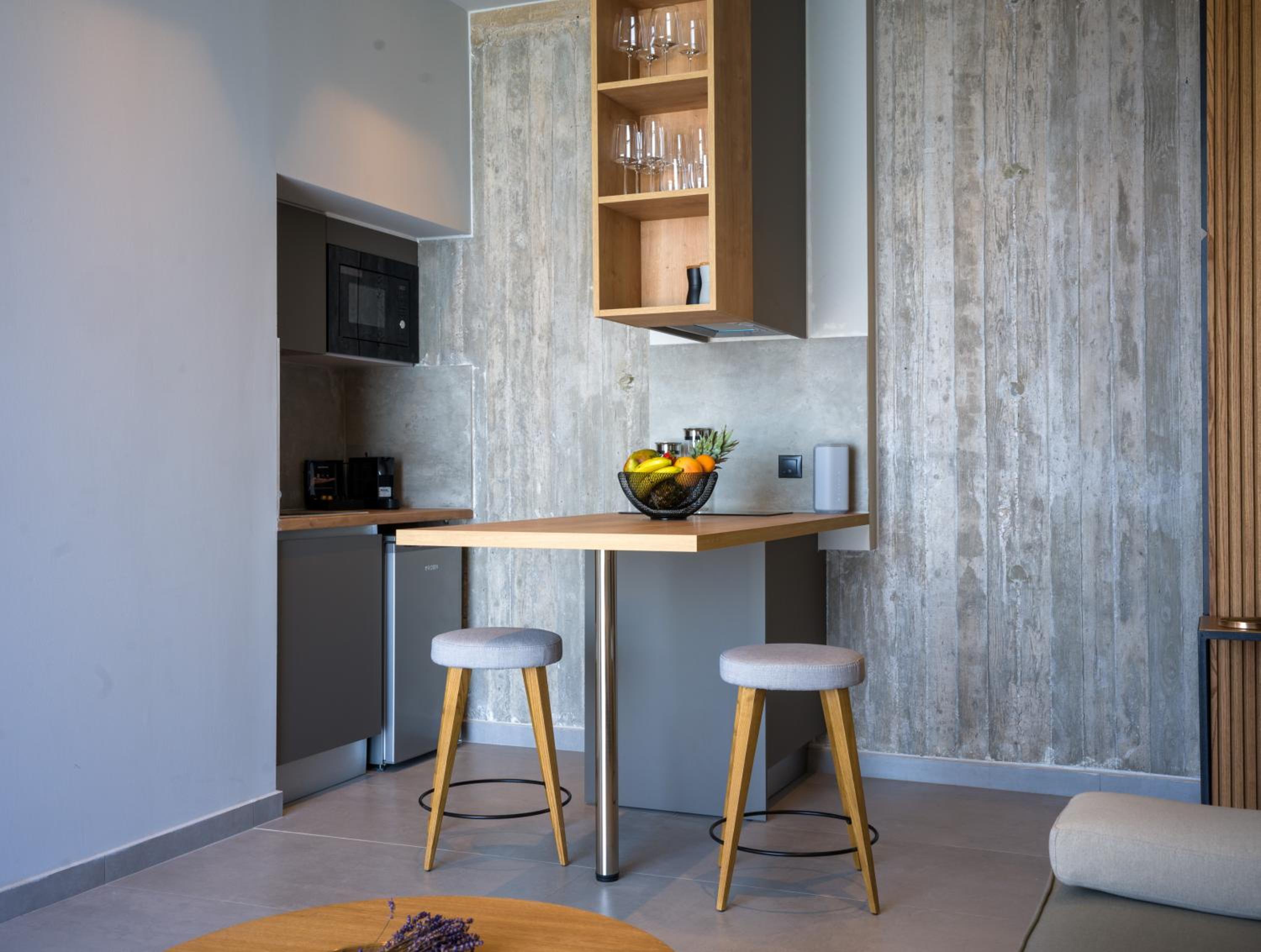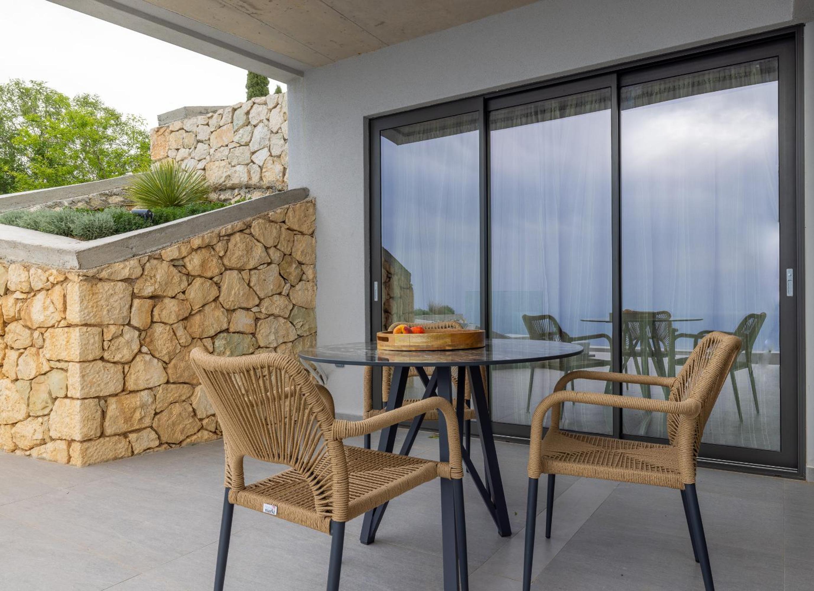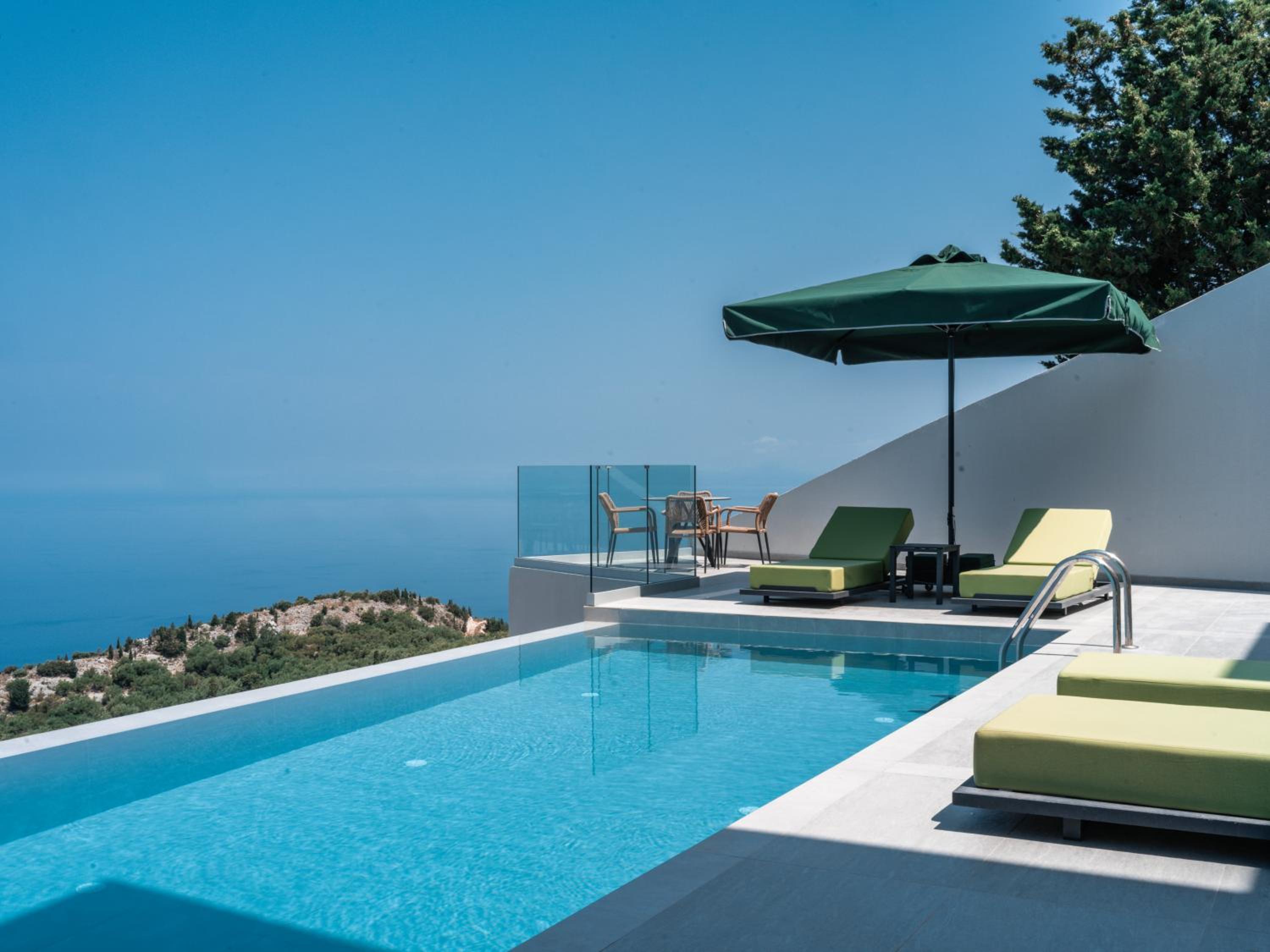 Enjoy breathtaking views of the sea and mountains from the seasonal outdoor pool, terrace, or private balcony available in some units. The perfect backdrop for a relaxing getaway, guests can unwind in the tranquil surroundings of Exanthia.