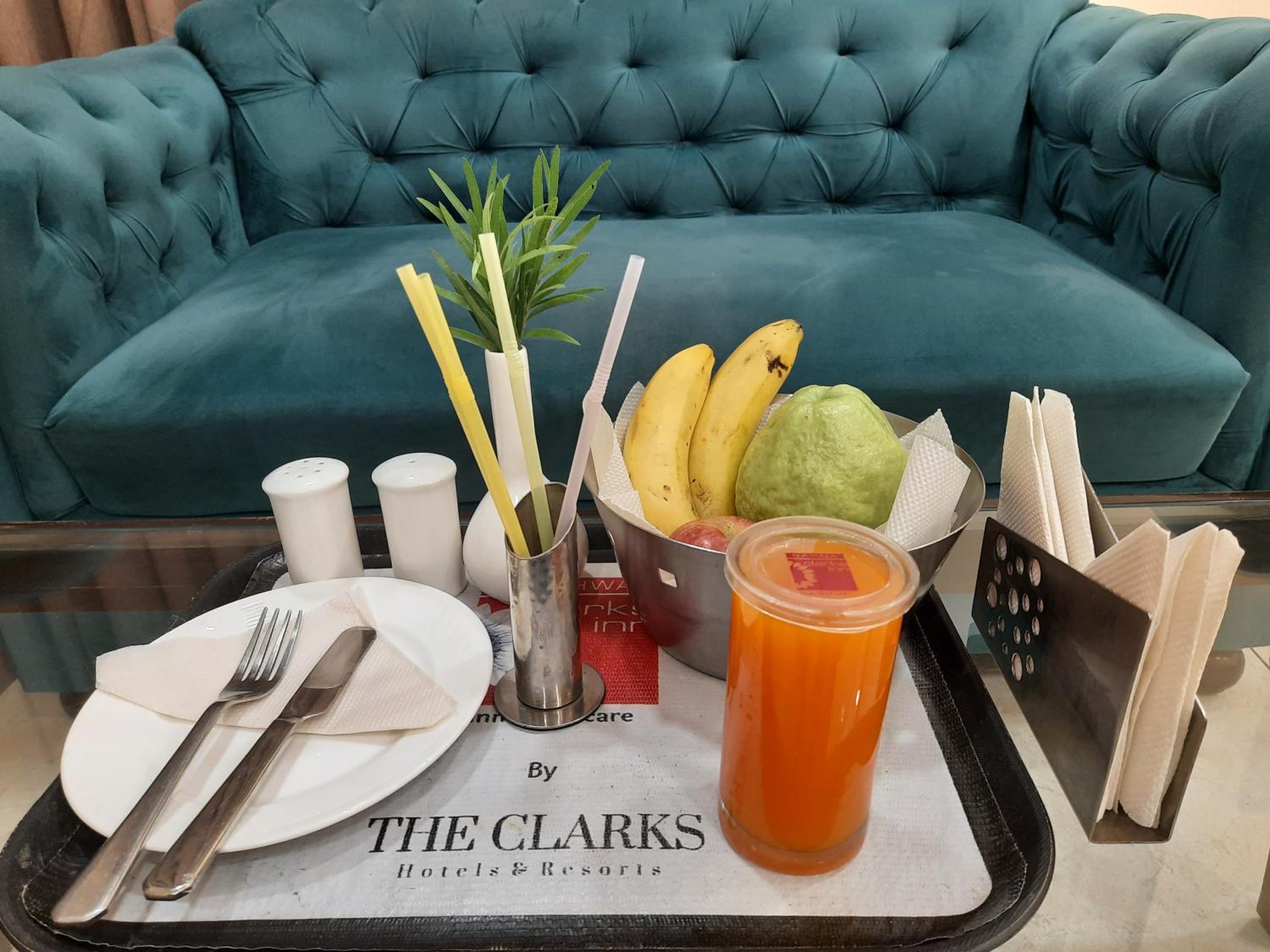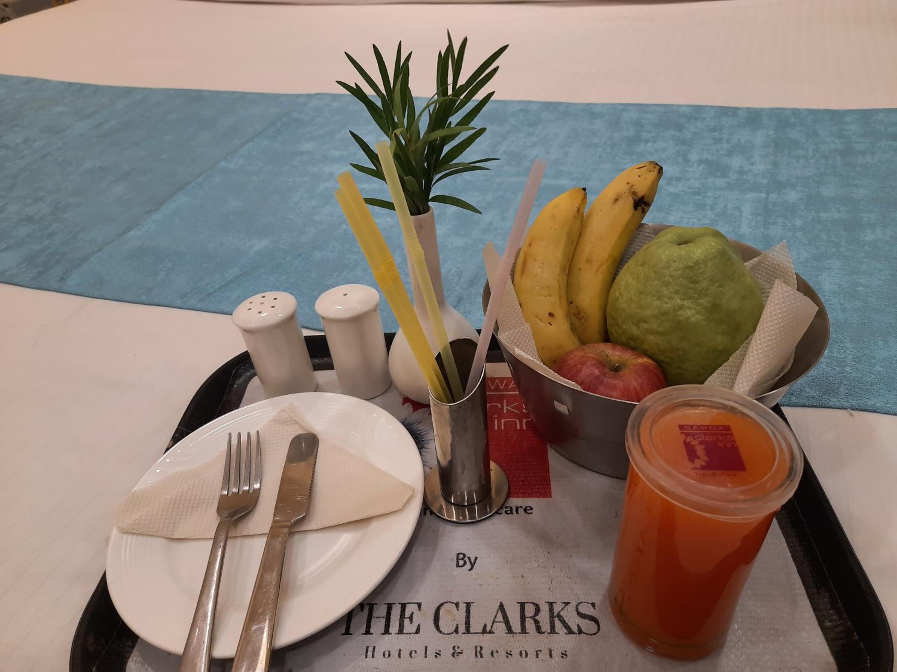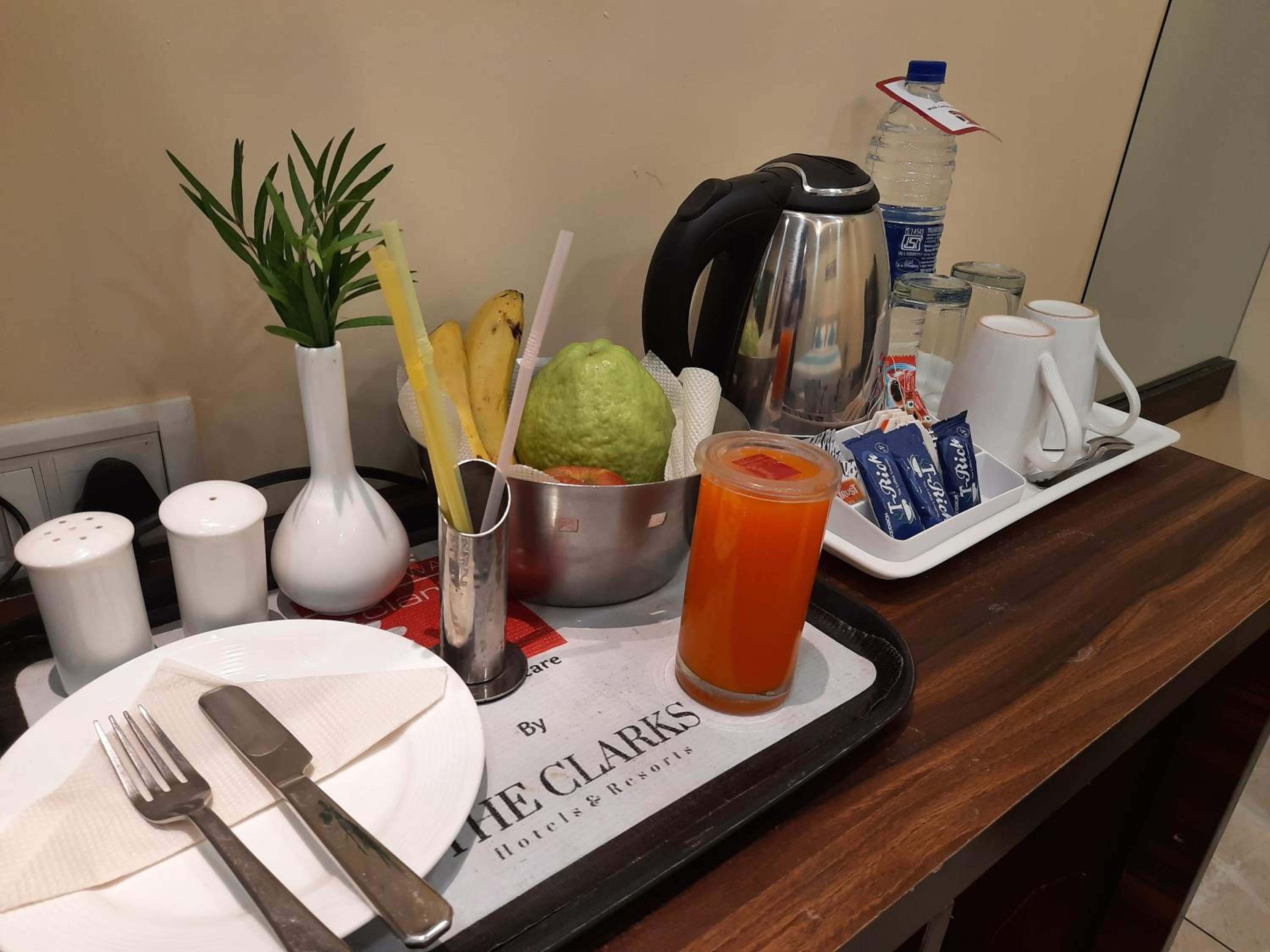 There are many things which require an upgrade , the bathroom had a stink , the hotel requires to invest in better quality towels and other toiletries inside . A standard hotel like Clark’s should come with better supplies of shampoo , body wash etc