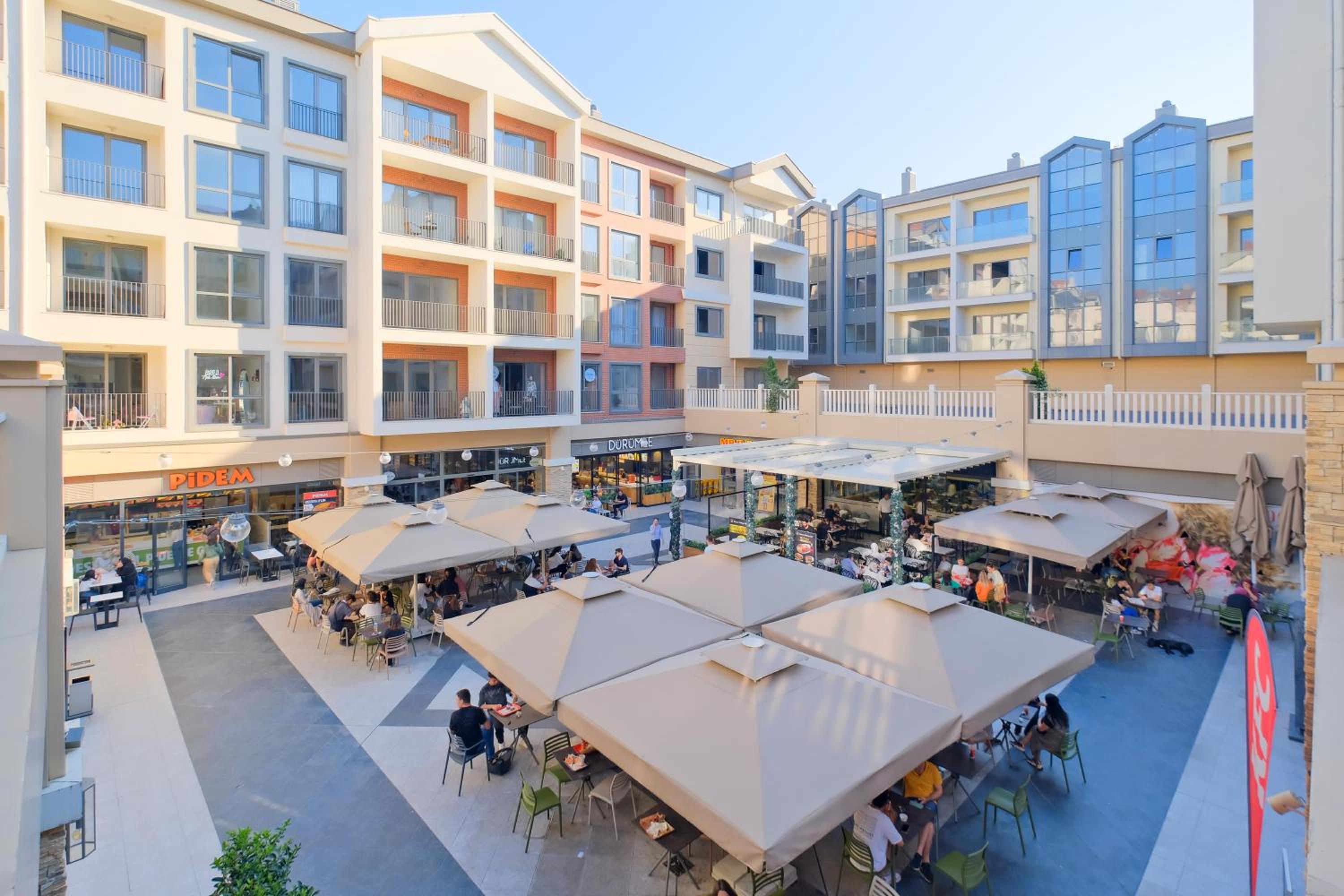 The apartment are located above open mall . Very family friendly