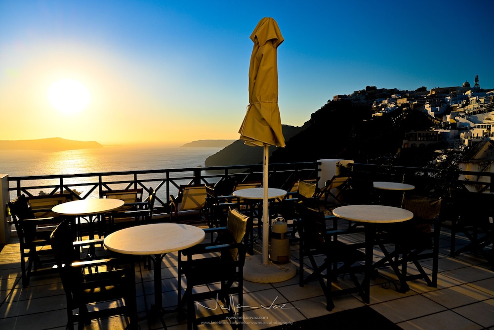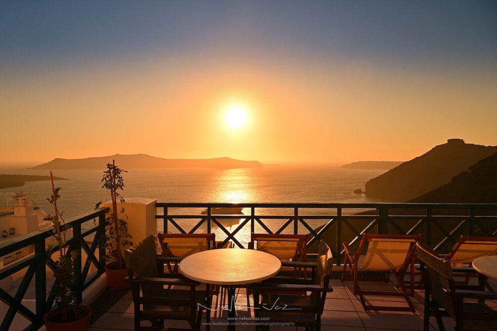 The Delion View Hotel was a great place to stay in Santorini. At first we were a little concerned about all the steps to get anywhere, but it seems like that's the case most places in Santorini. If you want a great place with a private balcony to watch the sunset on Santorini rather than fighting the restaurant crowds, it's perfect. This place has a great view. Our room was a great size for three people, and nice and cool. Their breakfast in the morning comes with a choice of eggs and then various sides that change each day. You can get it at the cafe upstairs or on your balcony. The beds were a little hard for us, but not super uncomfortable. All in all, it was a great stay and a great hotel.