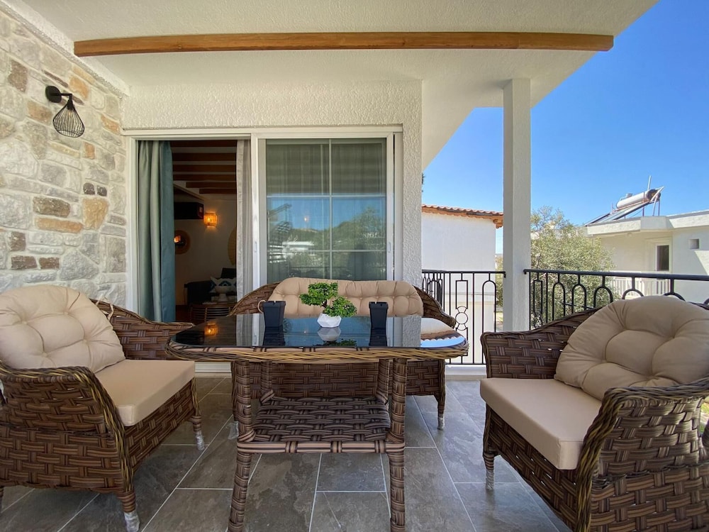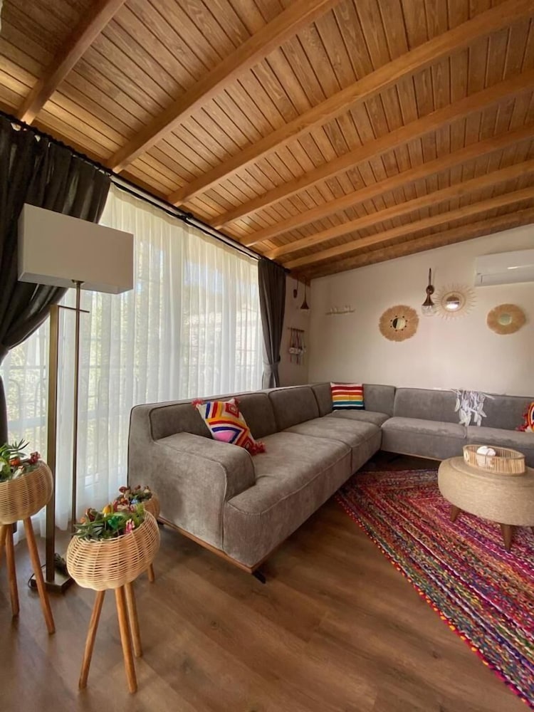 90lardan kalma bakımsız bir site içerisinde yenilenmiş bir ev. Asla fotoğraflarda gösterilmemiş tabii ki ama bize verdikleri ev sitenin dışında bir gecekonduya bakıyor. Arası da 3-4 m Max. Keyifli görünen balkonda hiç oturamadık. Bizi karşılayan hanımefendi bizden önce eve yanlışlıkla başka misafirleri yerleştirmiş. Biz gelince durumu farketti. Saat 17.30 de gelmemize rağmen önce site kapısı önünde 15 dk bizimle ilgilenecek kişiyi bekledik. Daha sonra da eve yanlışlıkla yerleştirdikleri insanları çıkarmalarını bekledik. 45 dk sonra eve yerleşebildik ve bizden önce yanlışlıkla eve yerleştirdikleri insanlardan sonra ev temizlenmemişti. Evin girişi inşaat alanı gibiydi, çocuk parkı sanki yıllar önce terkedilmiş gibi bakımsızdı. Plajdaki tesis inanılmaz kalitesiz ve duşlar pisti. 2 gece ödedik ancak 1 gece kalıp döndük. Olan ödediğimiz paraya ve boşa giden tatile oldu.