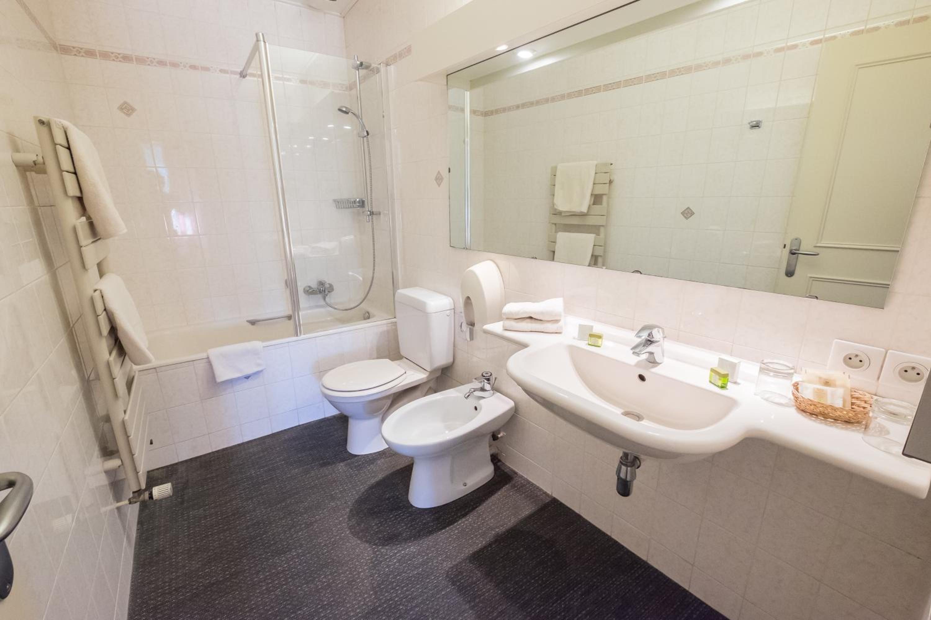 Relax in our soundproofed rooms equipped with a flat-screen TV and satellite channels. Each room features a private bathroom with a hairdryer and a bath or shower, ensuring a comfortable stay for our guests.