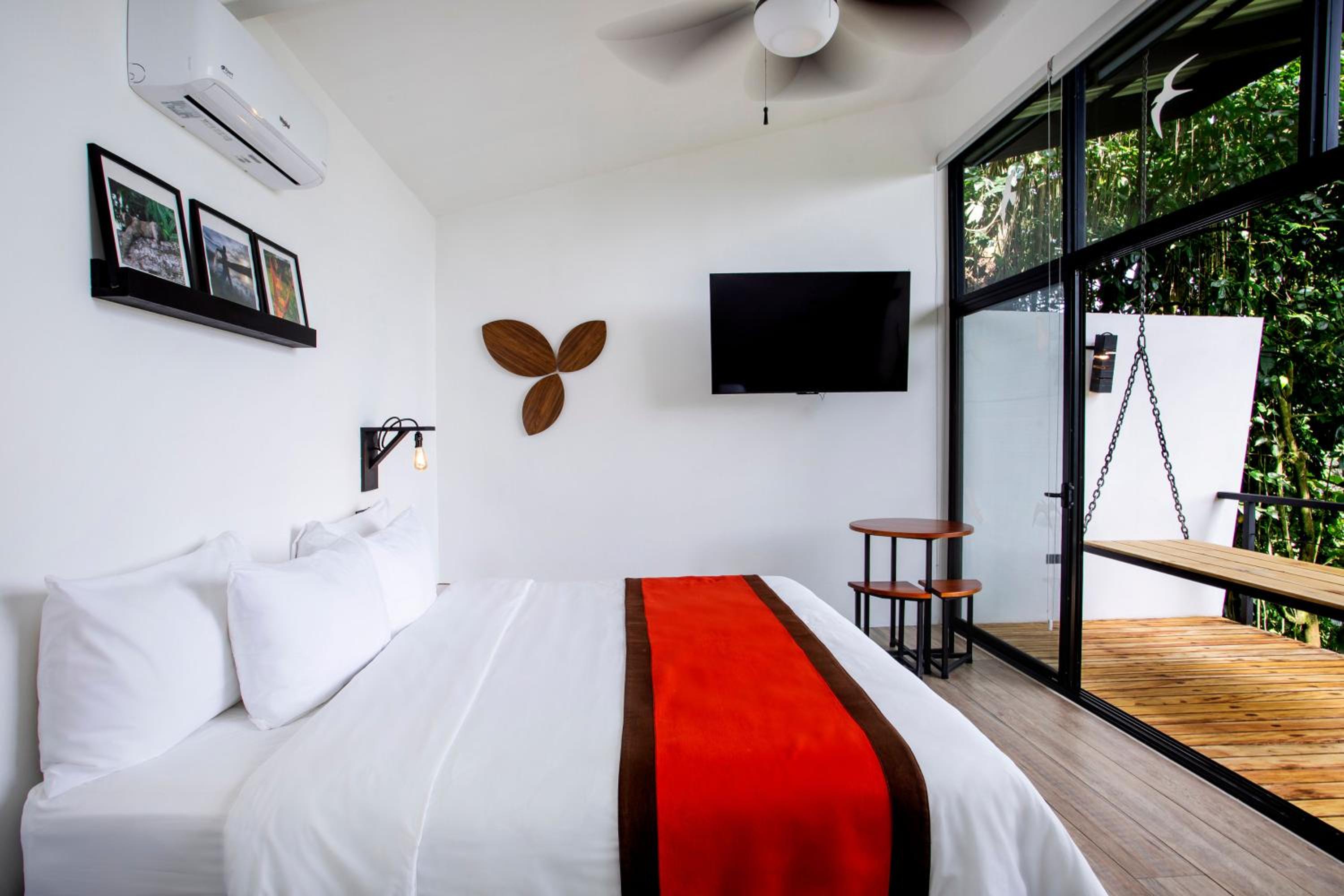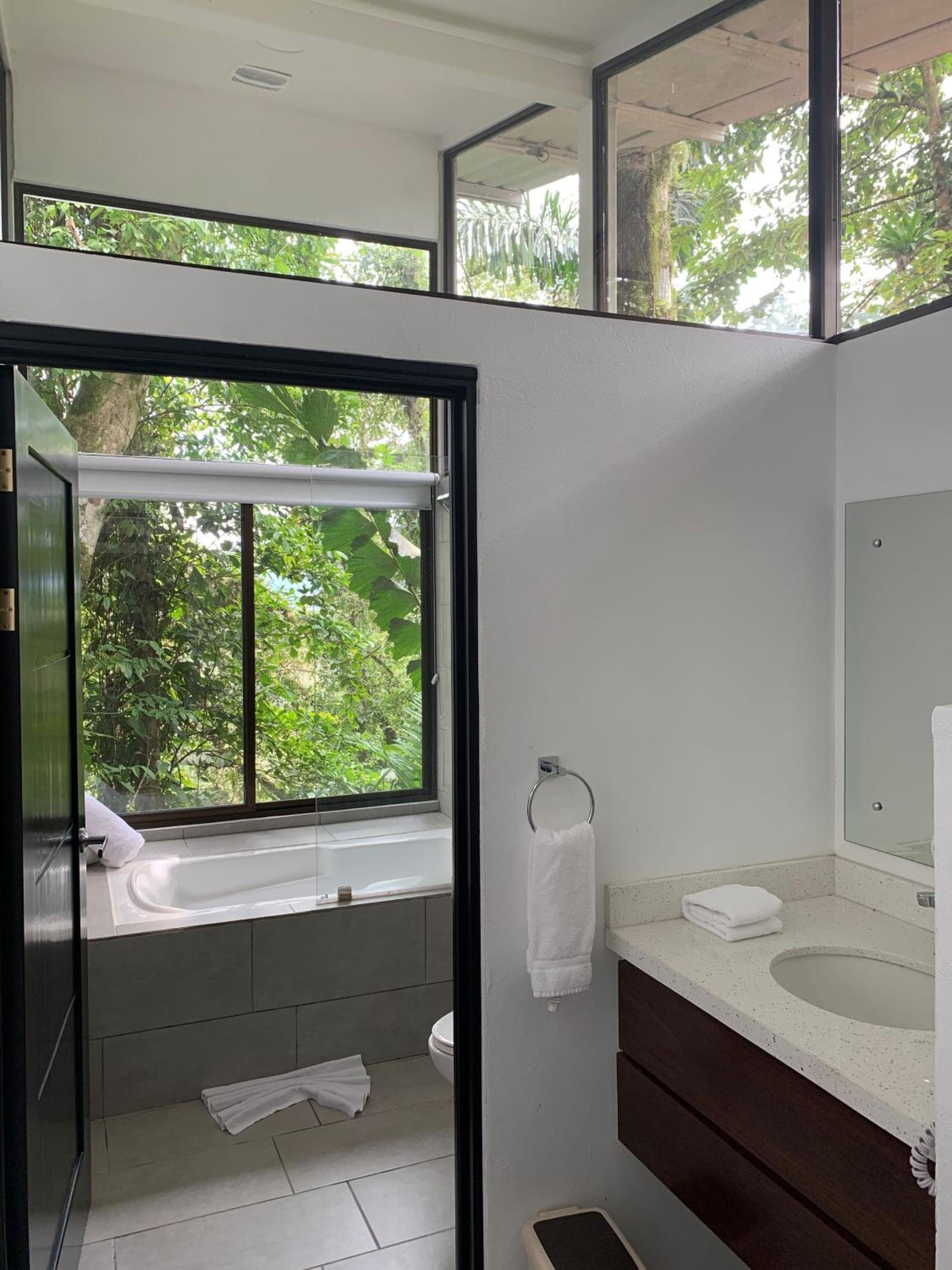We loved how secluded the room was. It felt like you were sleeping and showering in the jungle itself. While it was hot and humid at times, the AC in the room kept it comfortable the whole time. We also loved the location. The Mistico park is in the same area and were we able to walk to the hanging bridges tour we planned. The breakfast at the Blue Hibiscus Restaurant was absolutely delicious as well. The staff was delightful and so helpful. My husband loves to take pictures and one of the staff saw him taking pictures and showed him to an awesome snake (not poisonous) he had found so my husband could get some good shots of it.