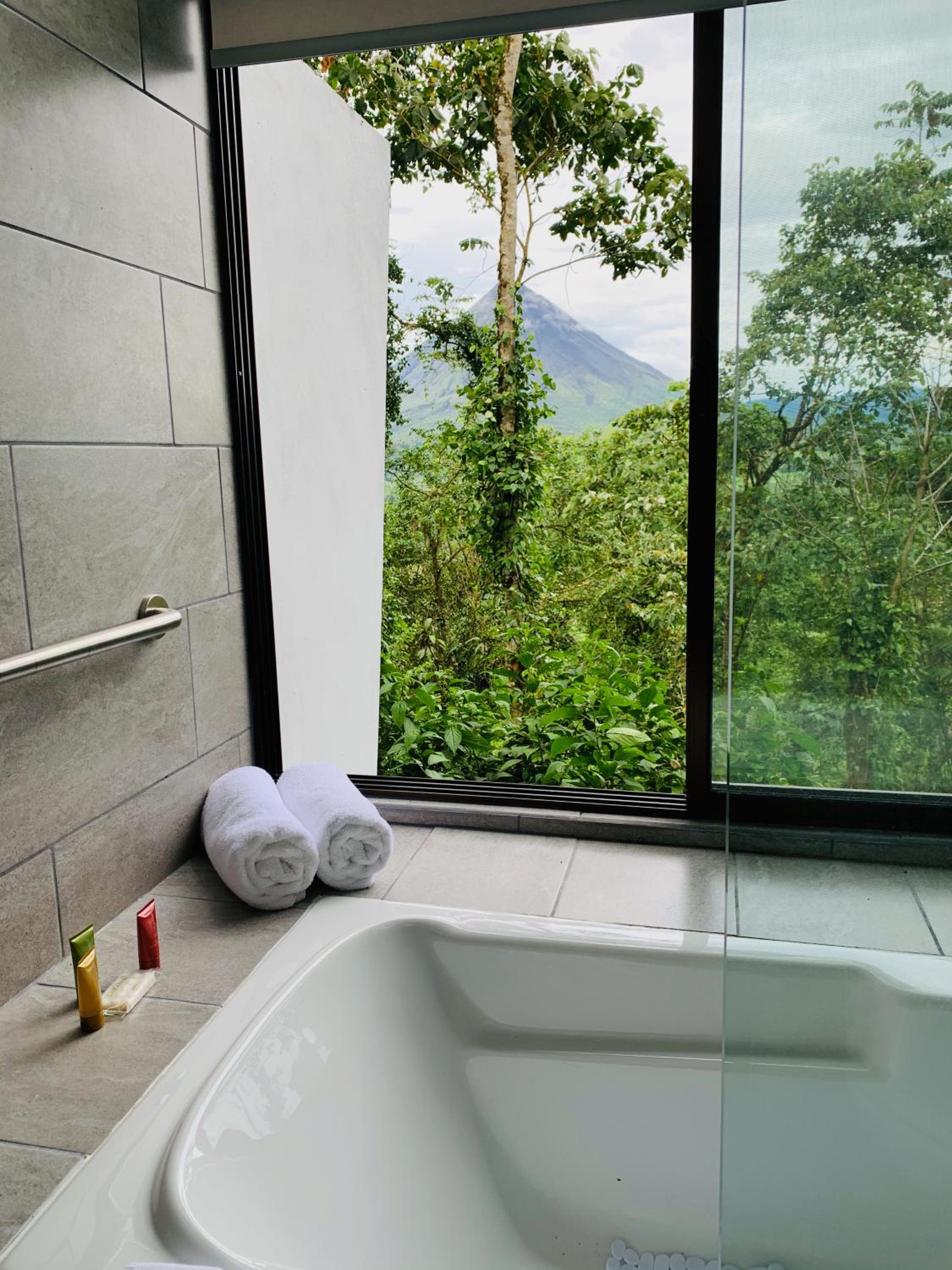 Breathtaking view of Arenal; very nice staff who patiently answered all questions & organized excursions & wellness; our lodge was beautiful, comfortable bed, shower with breathtaking views, just a dream; also very quiet