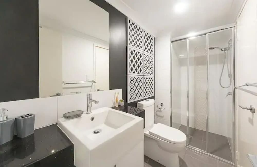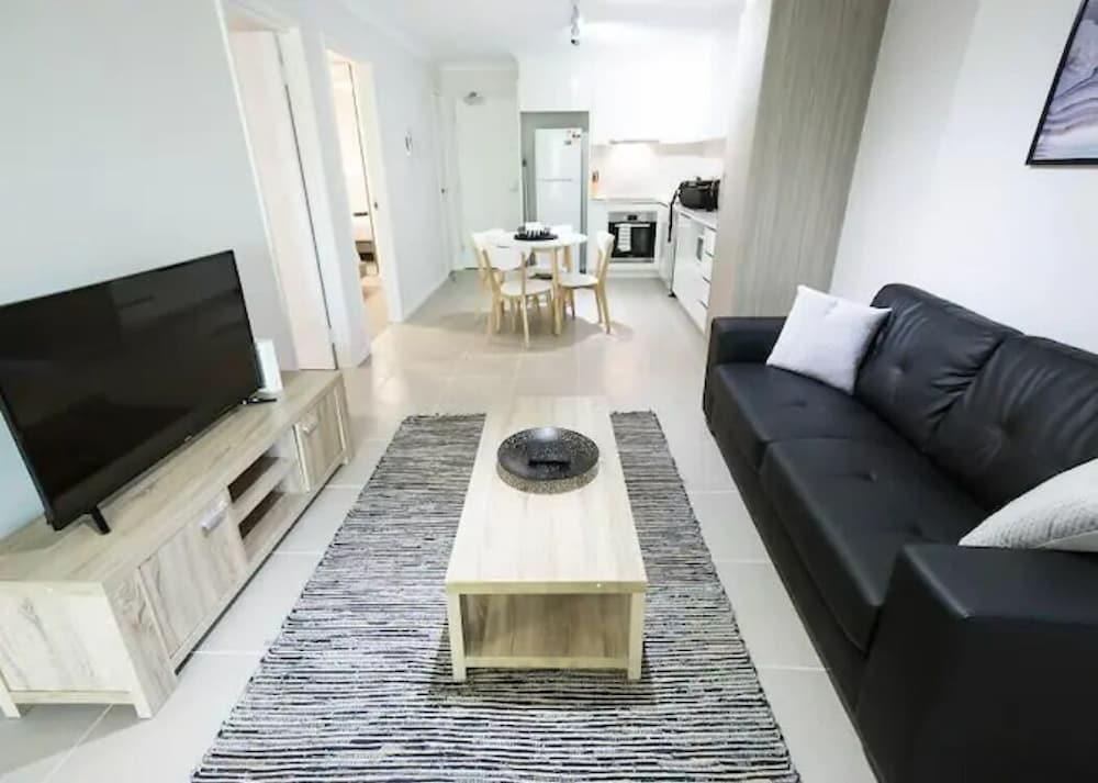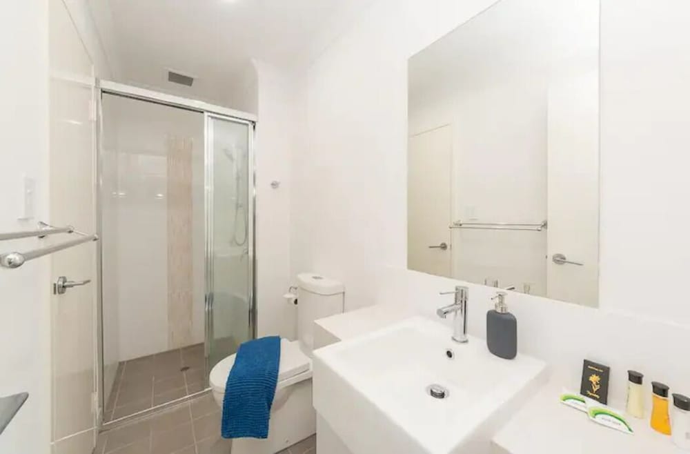 High density apartment living. Heavy foot traffic in L2 corridor and regular slamming of the fireproof door outside our apartment. Common areas and car park not very clean but overall it’s a great place to drop your bags and rest for the night. Beds were comfy (very important) and kitchen was spotless. Balcony overlooking the park was a great place to relax at the end of the day. Close to beach, shops & cafes. Shower caddies needed in both bathrooms.