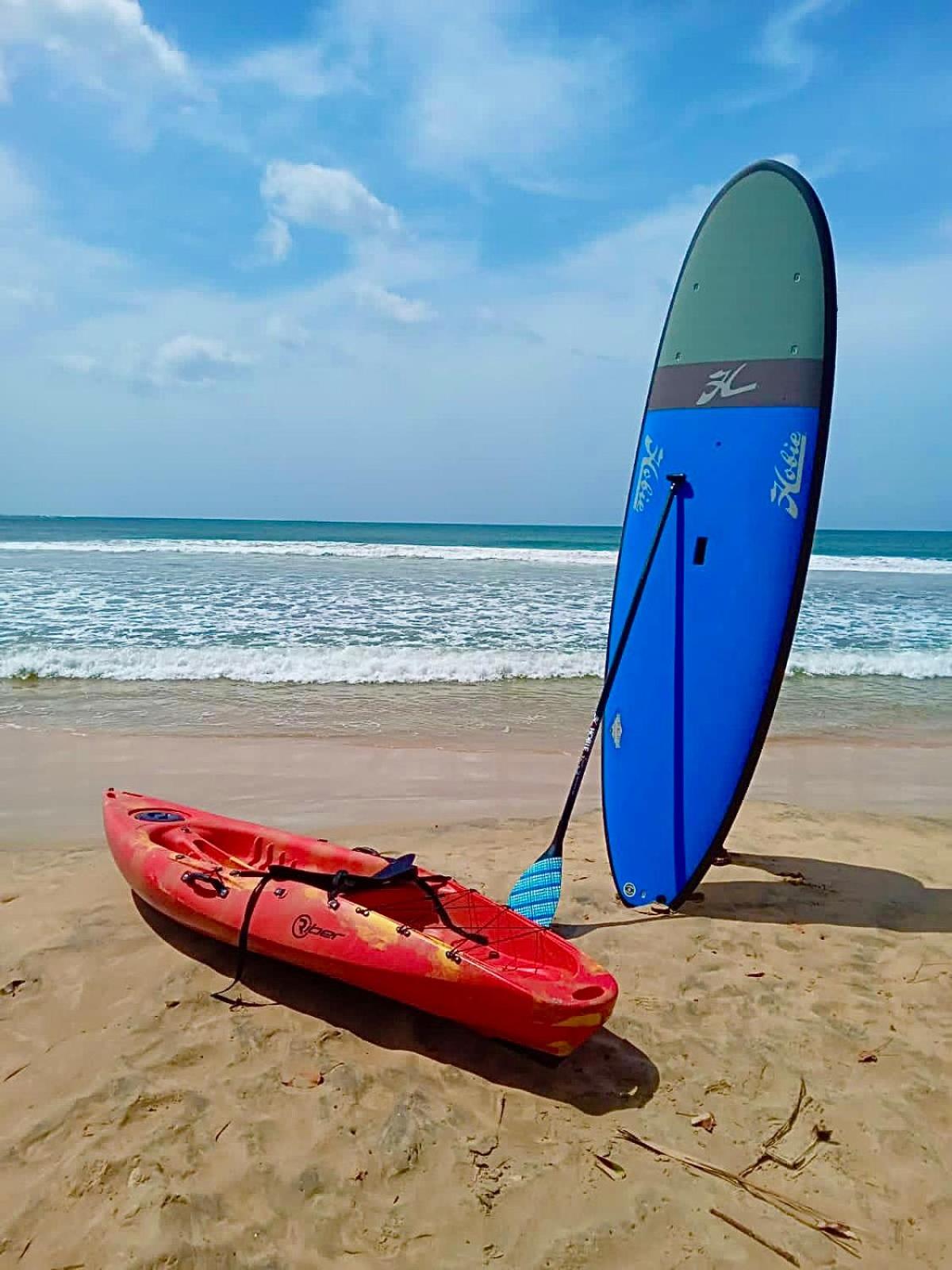 Het hotel stelt surfboards en bodyboards ter beschikking die je vrij kunt gebruiken, wat het verblijf extra leuk maakt. Ook het eten in het hotel is heerlijk en met veel zorg bereid. Daarnaast ligt er op het strand een klein lokaal eettentje dat absoluut een aanrader is: een fijne sfeer, fantastisch eten en dineren met je voeten in het zand, pal aan de waterlijn — magisch.