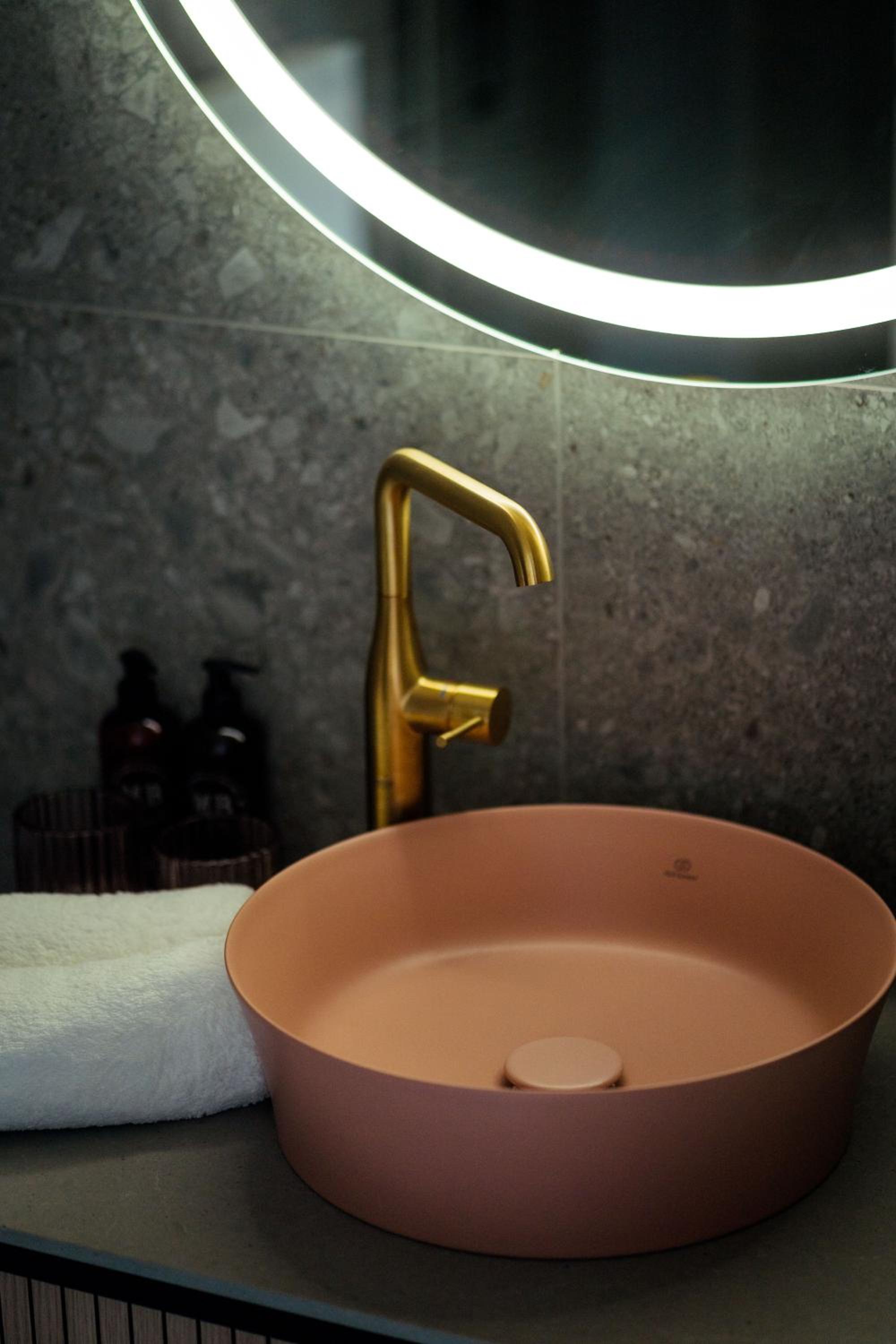 Es gab Zahnpasta Spritzer im Bad.
