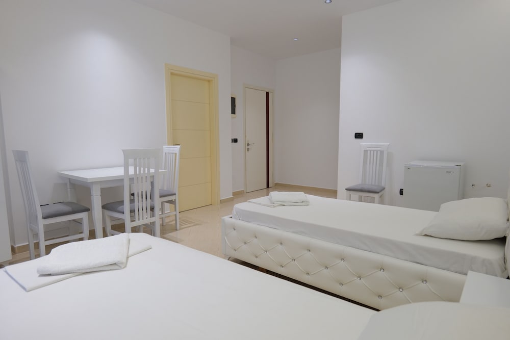 L’hotel ha un bel potenziale , esteticamente molto carino sulla via principale di Saranda ma fuori dal macello della passeggiata ( dalla parte opposta del porto , circa 2km a piedi dalle partenze traghetti). Siamo arrivati e il proprietario voleva farci pagare la stanza che avevamo già pagato ..dicendo che con Expedia non si trova bene 😰. Ma a parte quello poi era molto gentile . Gestione familiare , pulizie scarse ( in 5 notti ci hanno pulito mezza camera ( il bagno no) solo una volta . La camera però era molto spaziosa e con aria condizionata. Colazione scarsissima inclusa . Pane bianco , pomodori, cetrioli , feta, salsiccia e uova. Sempre uguali , fredde. Di dolce solo una marmellata e anguria .il caffè era da pagare a parte . Nel complesso però ci siamo trovati bene perché gli spazi della camera erano comodi . Pizzaiolo italiano molto bravo , una sera abbiamo mangiato lì , consigliamo Giovanni per la pizza !